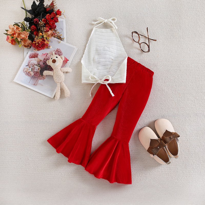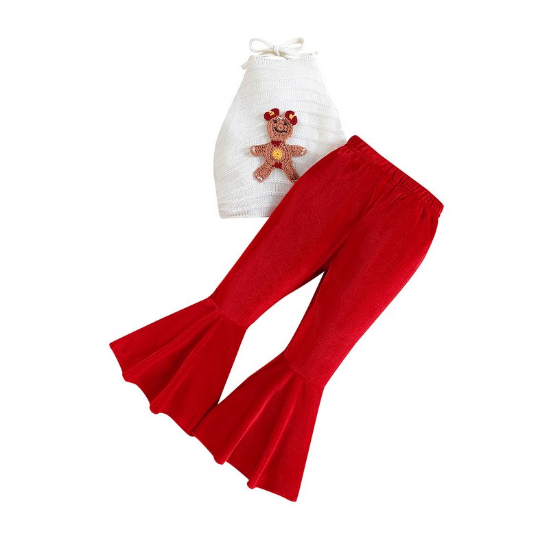 Kids Baby Girls Casual Cute Cartoon Bear Sleeveless Halter Neck Top Flare Trousers Set