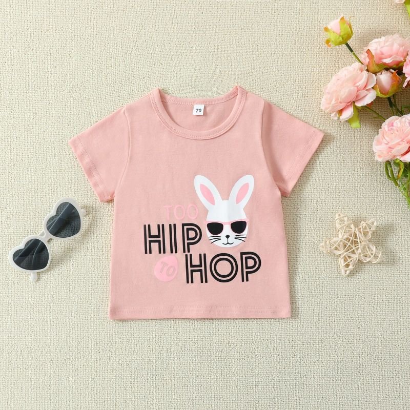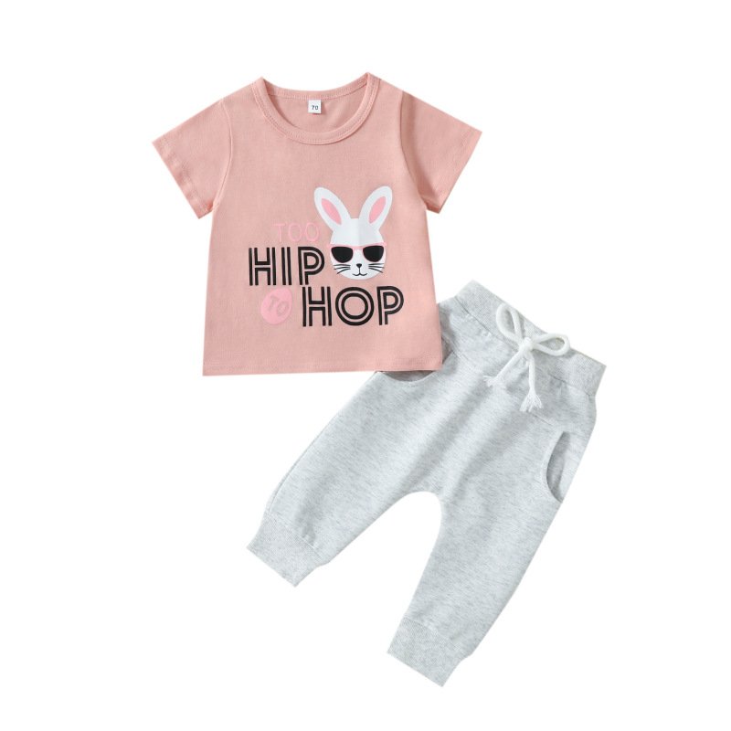 Kids Baby Girls Casual Cute Easter Day Cartoon Rabbit Print Short Sleeve Round Neck T-Shirt Trousers Set