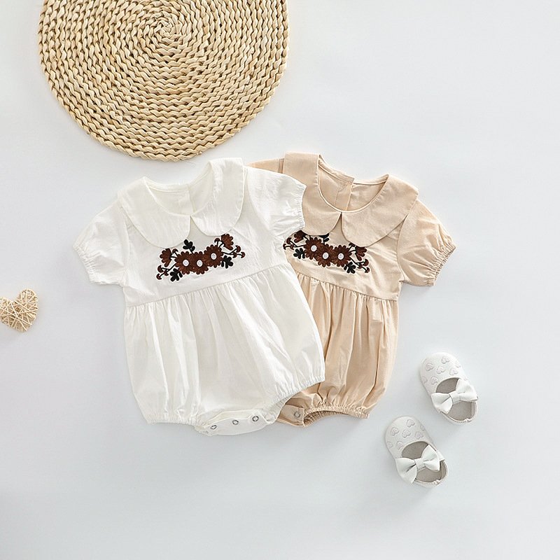 Kids Baby Girls Casual Cute Embroidery Floral Short Sleeve Peter Pan Collar Rompe