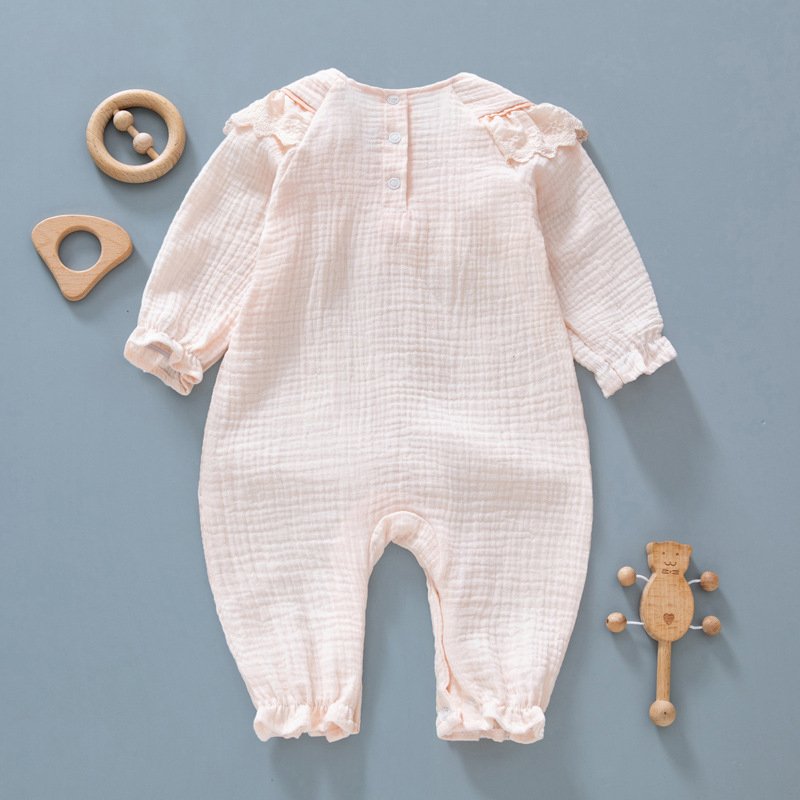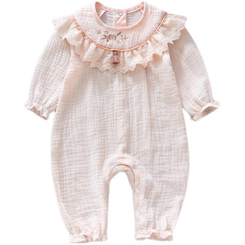 Kids Baby Girls Casual Cute Flower Embroidery Long Sleeve Romper