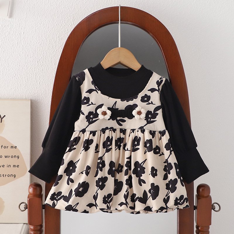 Kids Baby Girls Casual Cute Flower Print Long Sleeve Dress