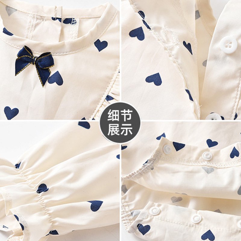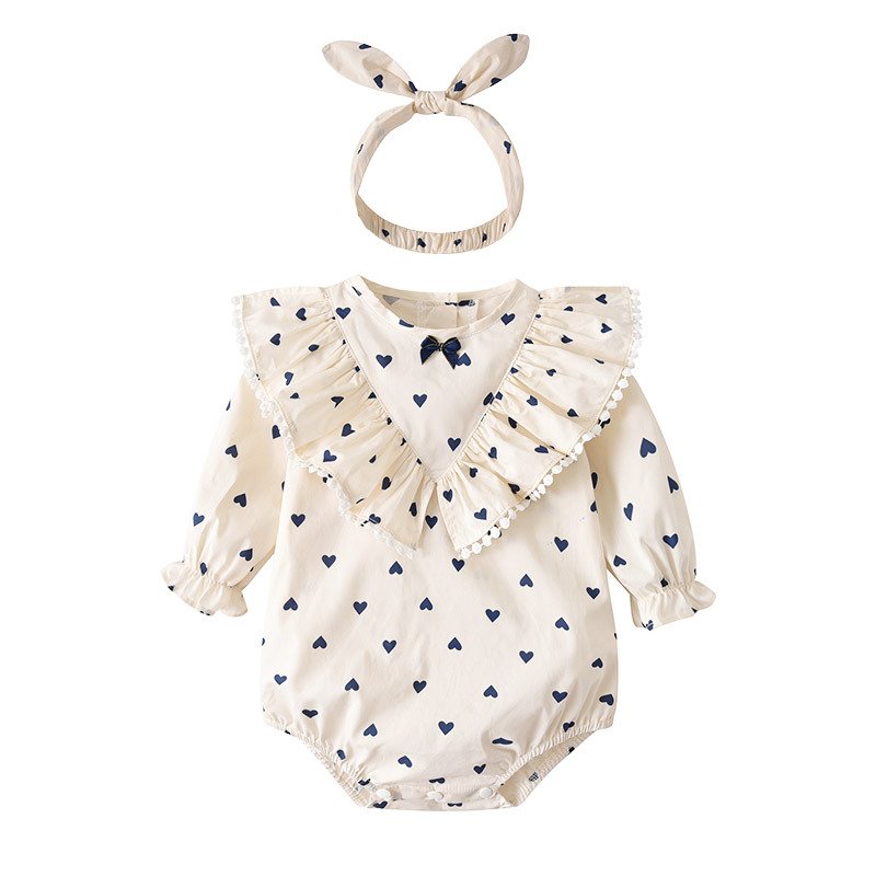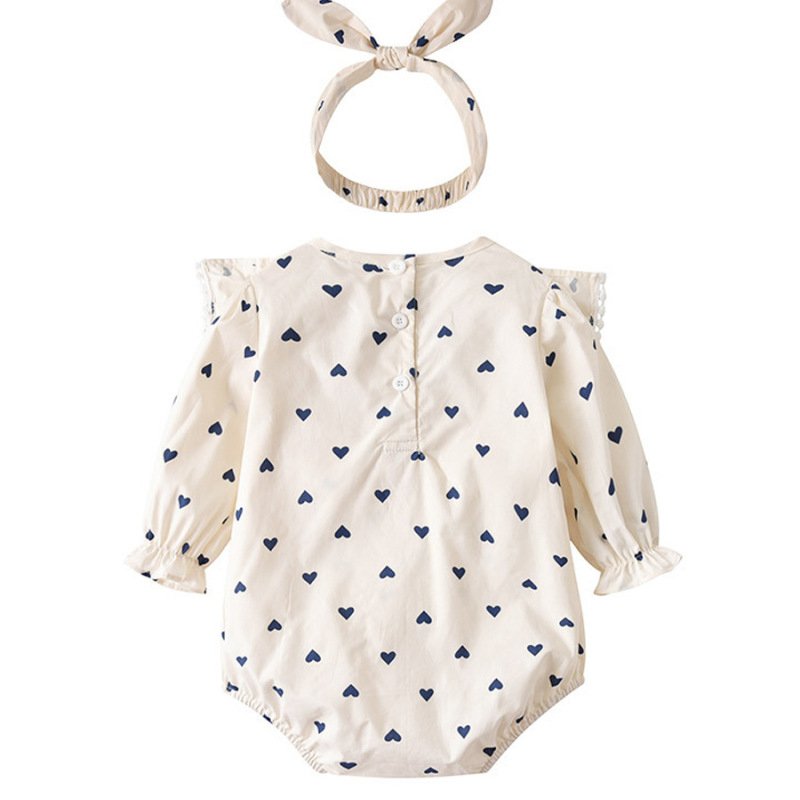 Kids Baby Girls Casual Cute Heart Print Long Sleeve Round Neck Romper