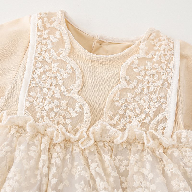 Kids Baby Girls Casual Cute Hollow Tiny Flower False Two-Piece Short Sleeve Long Sleeve Romper