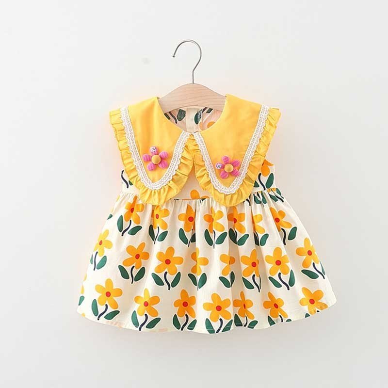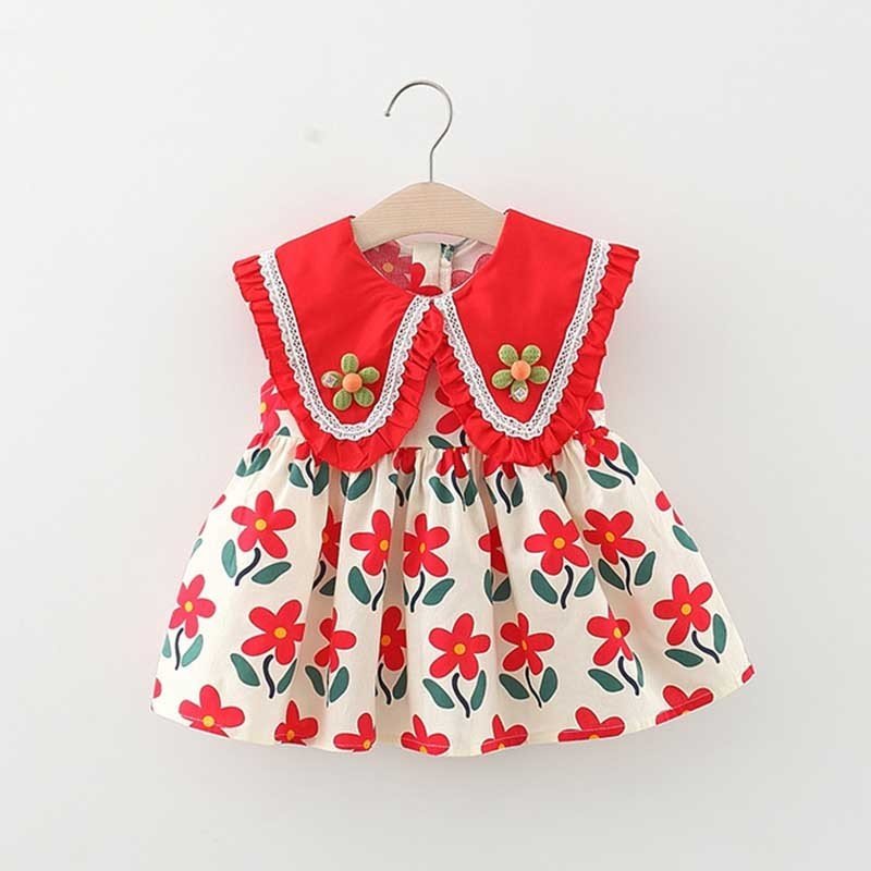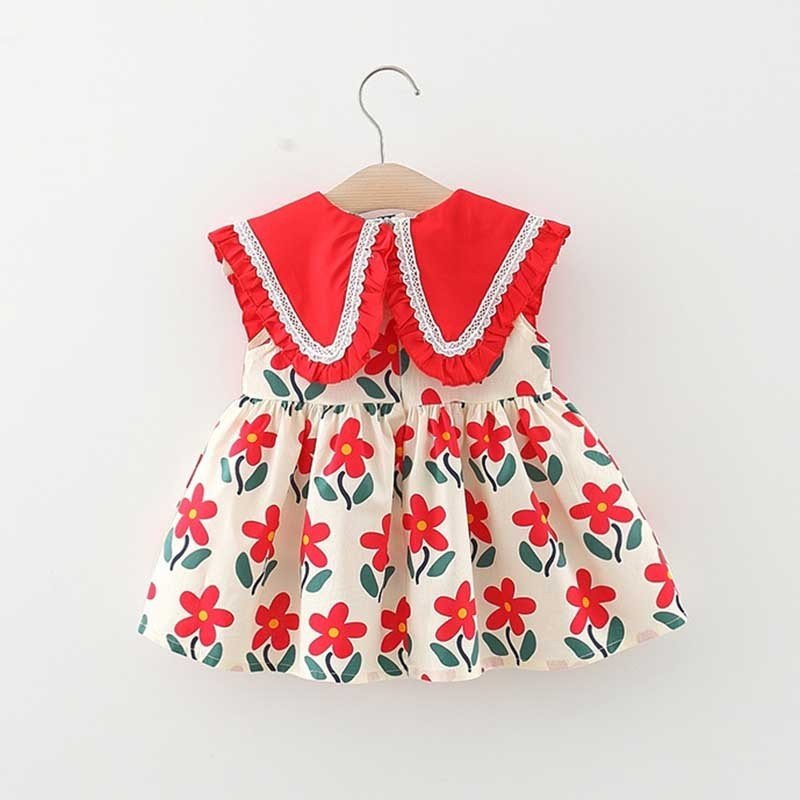 Kids Baby Girls Casual Cute Pastoral Floral Sleeveless Round Neck Dress