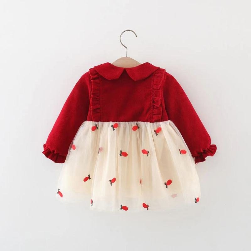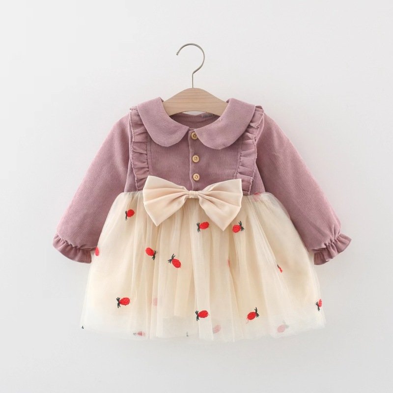 Kids Baby Girls Casual Cute Pineapple Mesh Print Bow Long Sleeve Lapel Dress