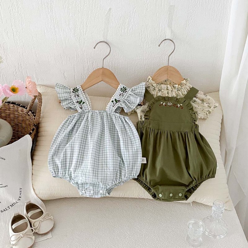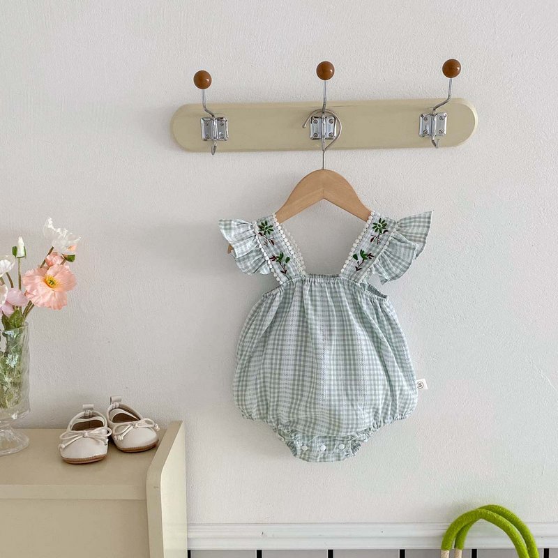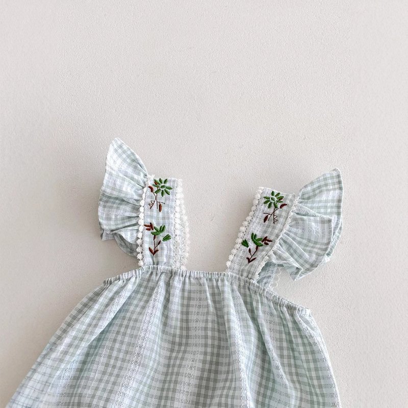 Kids Baby Girls Casual Cute Plaid Print Sleeveless Romper