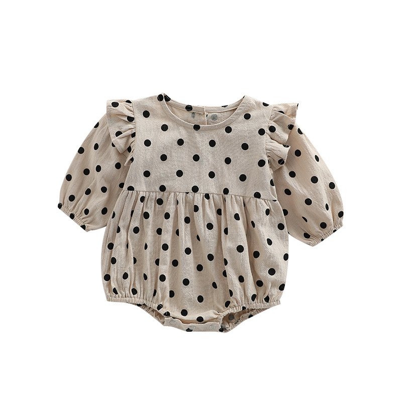 Kids Baby Girls Casual Cute Polka Dot Print Long Sleeve Round Neck Romper