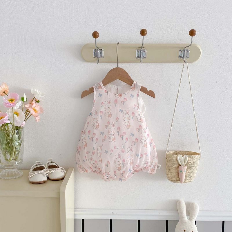 Kids Baby Girls Casual Cute Rabbit Print Sleeveless Romper