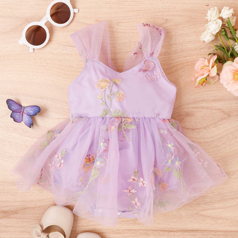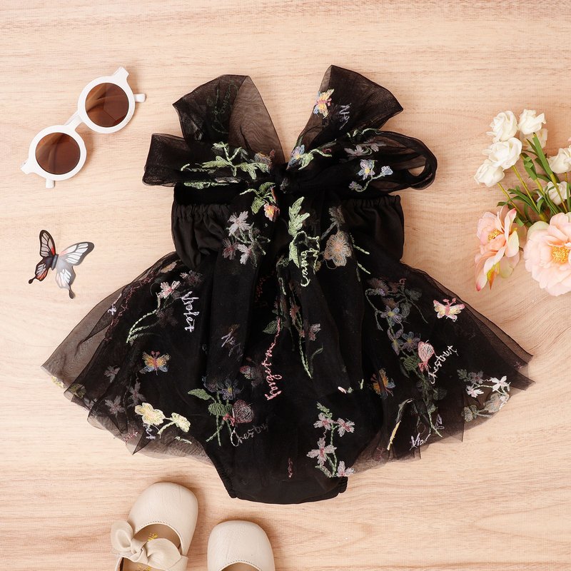 Kids Baby Girls Casual Cute Sleeveless Mesh Floral Embroidery Dress