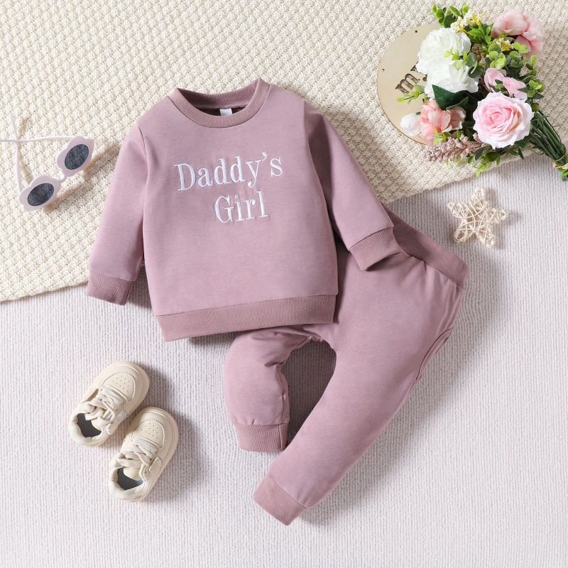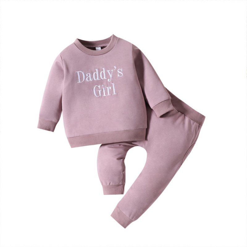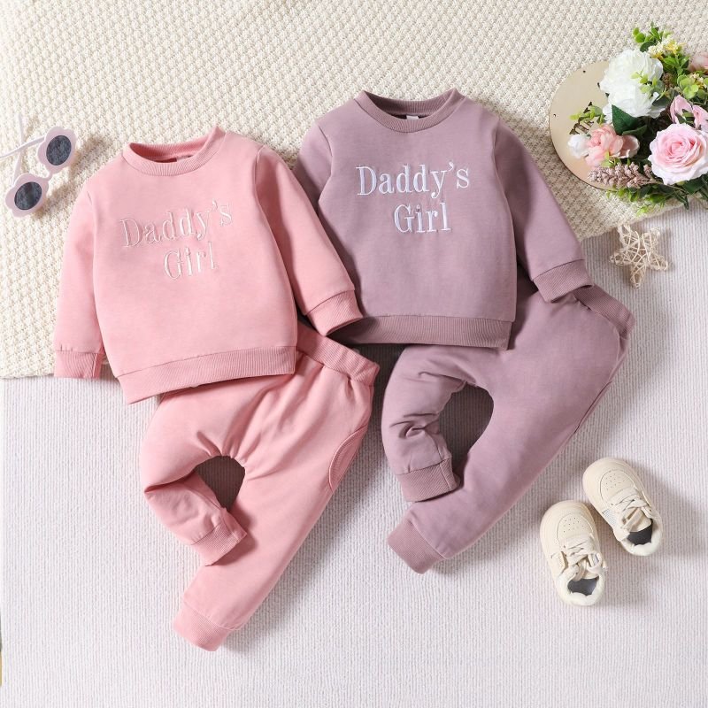Kids Baby Girls Casual Cute Solid Color Embroidery Letters Long Sleeve Round Neck Sweatshirts Pants Sets