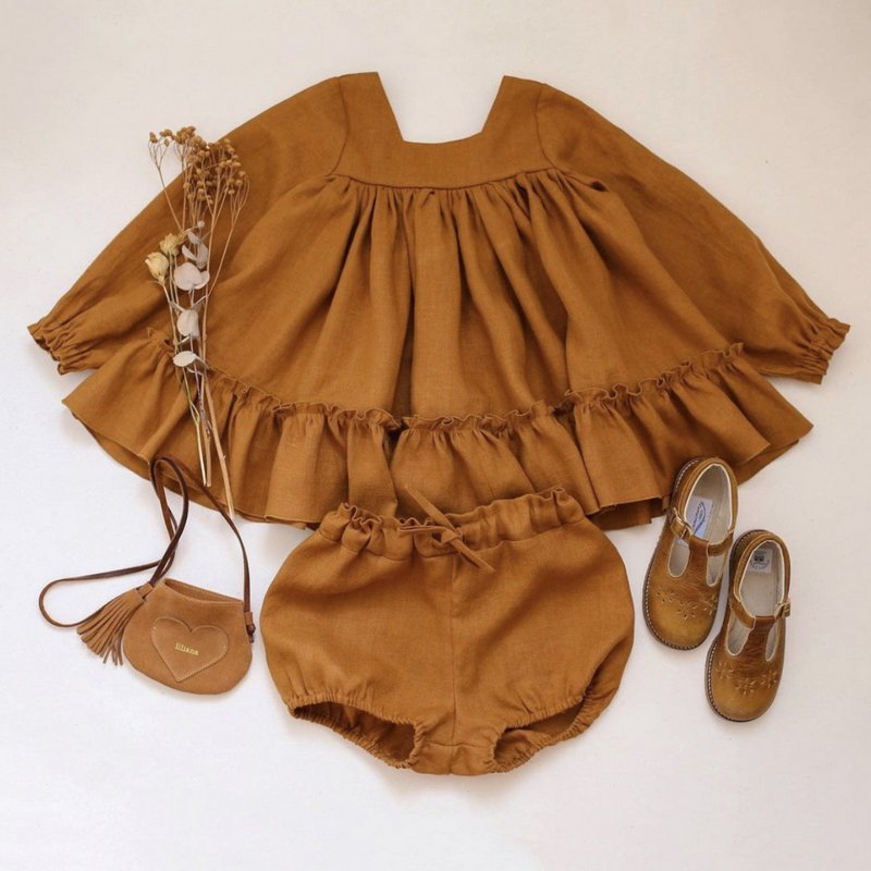 Kids Baby Girls Casual Cute Solid Color Long Sleeve Flounced Dress Shorts Set