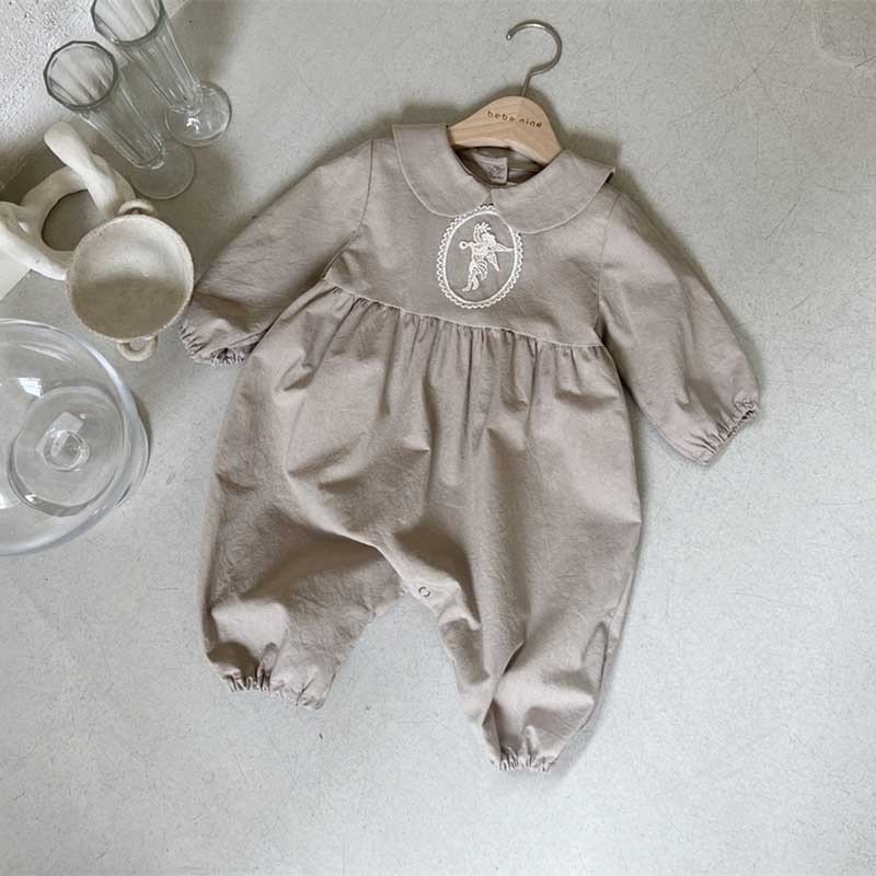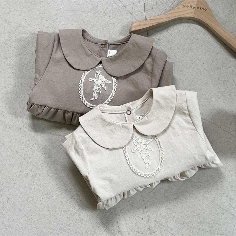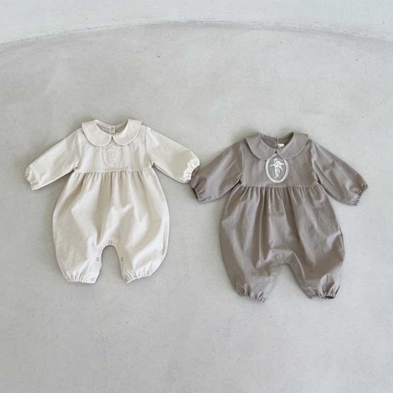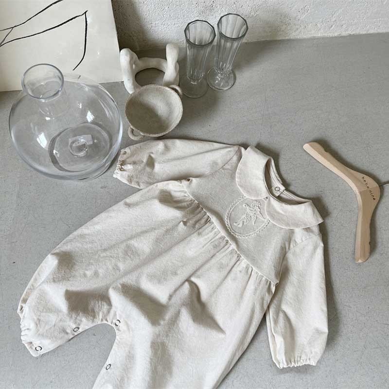Kids Baby Girls Casual Cute Solid Color Long Sleeve Peter Pan Collar Bodysuit