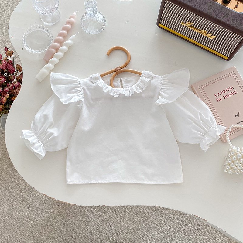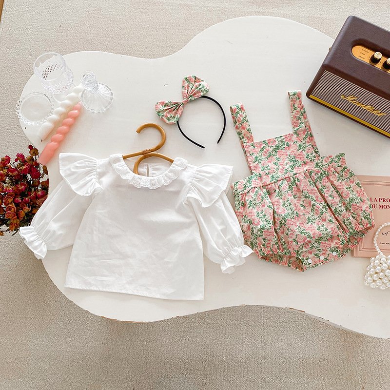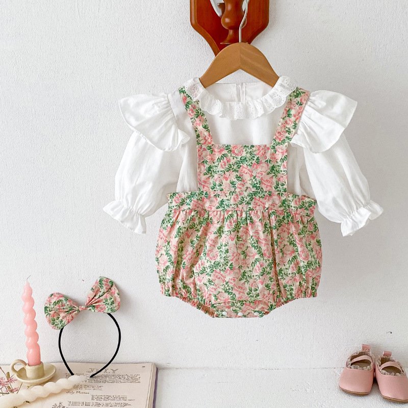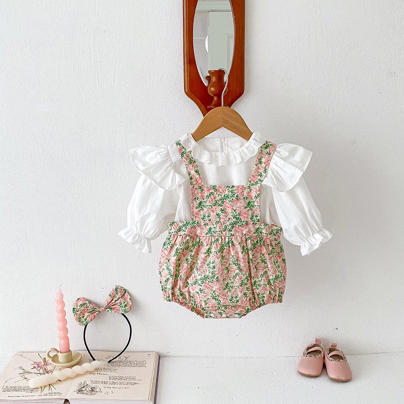Kids Baby Girls Casual Cute Solid Color Long Sleeve Top Tiny Flower Romper Set