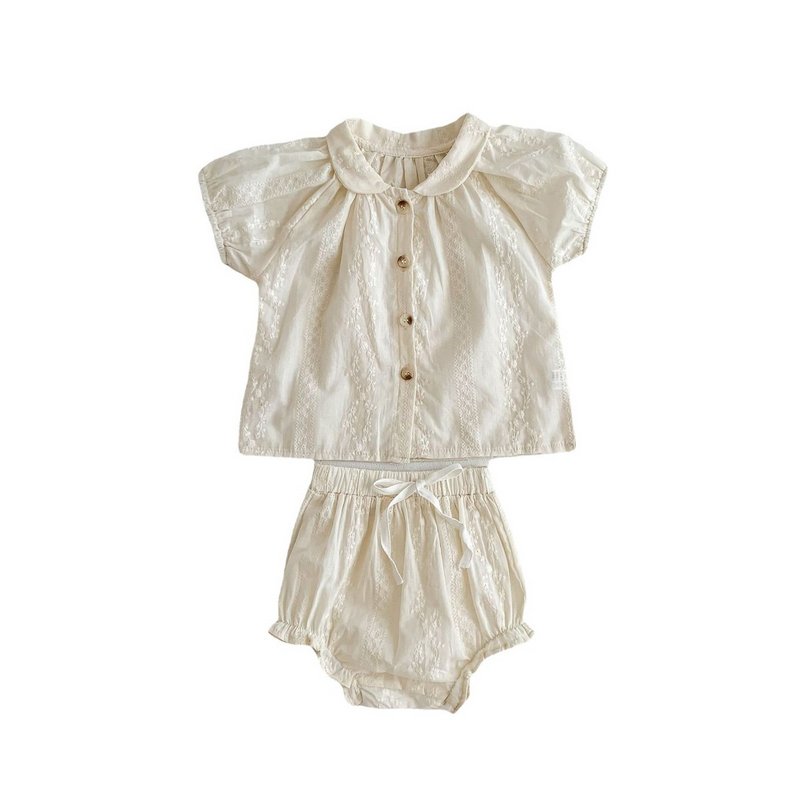 Kids Baby Girls Casual Cute Solid Color Short Sleeve Lapel Blouses Shorts Sets