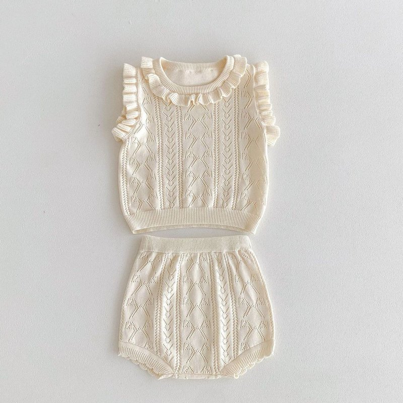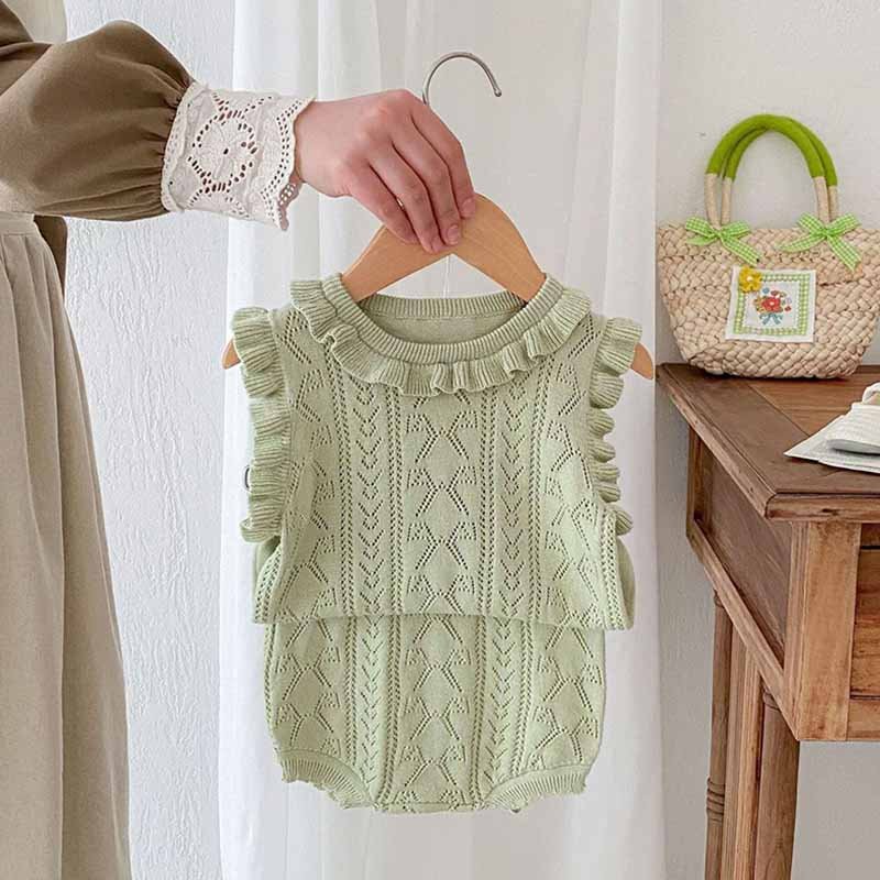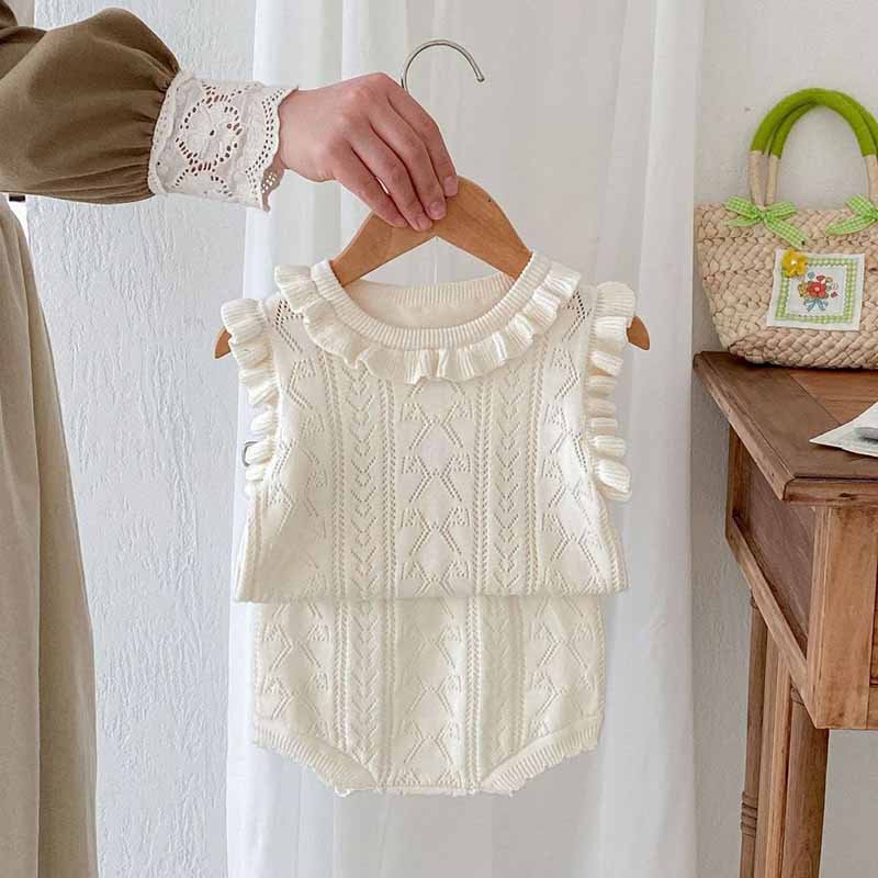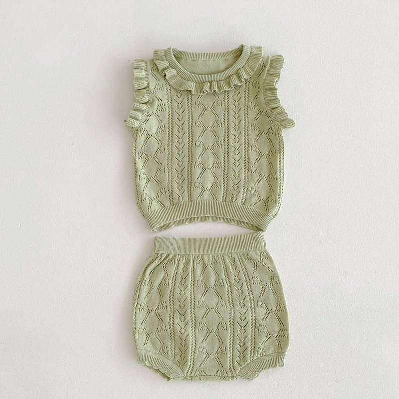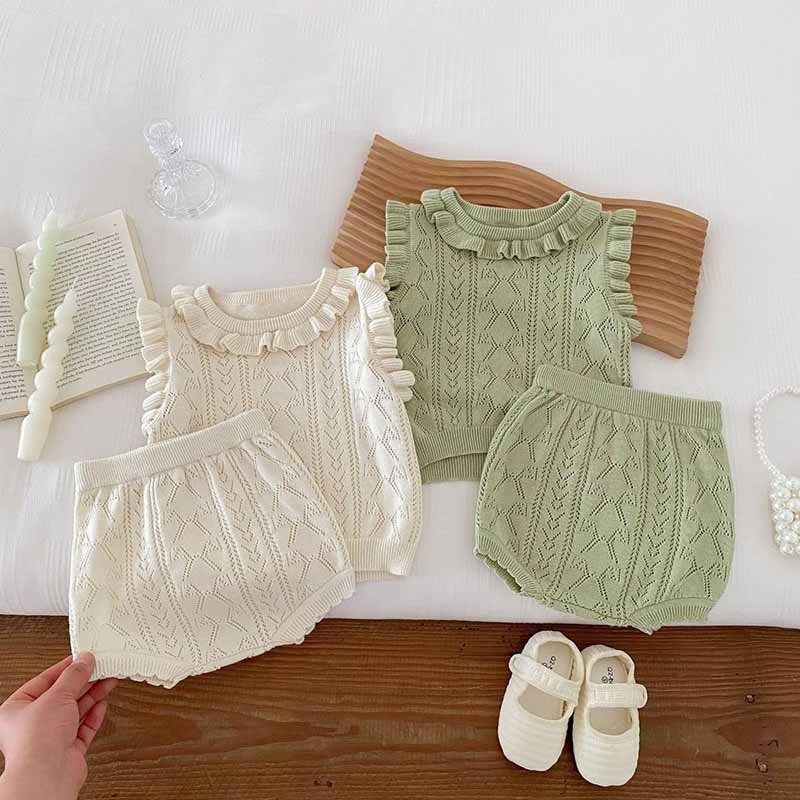 Kids Baby Girls Casual Cute Solid Color Sleeveless Knitted Top Shorts Sets