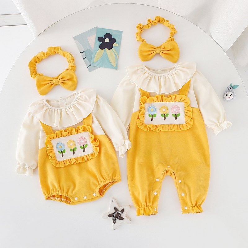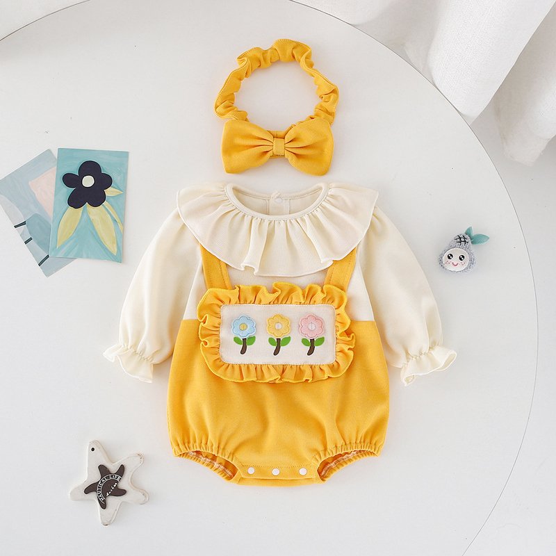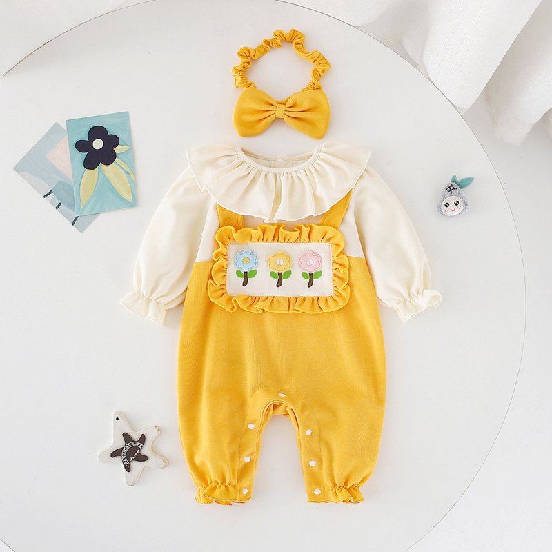 Kids Baby Girls Casual Cute Sweet Flower Long Sleeve Romper