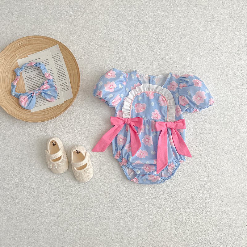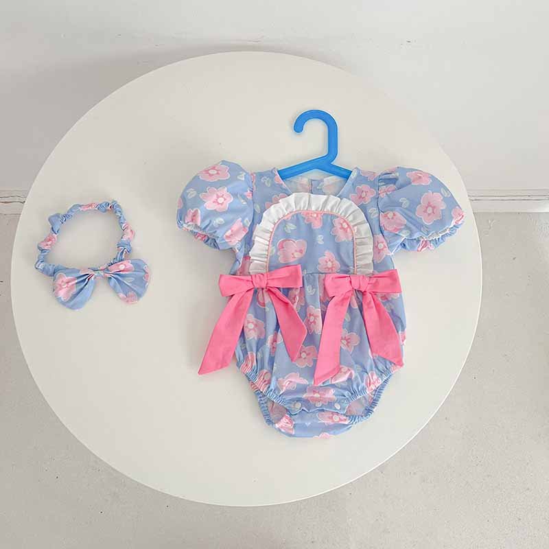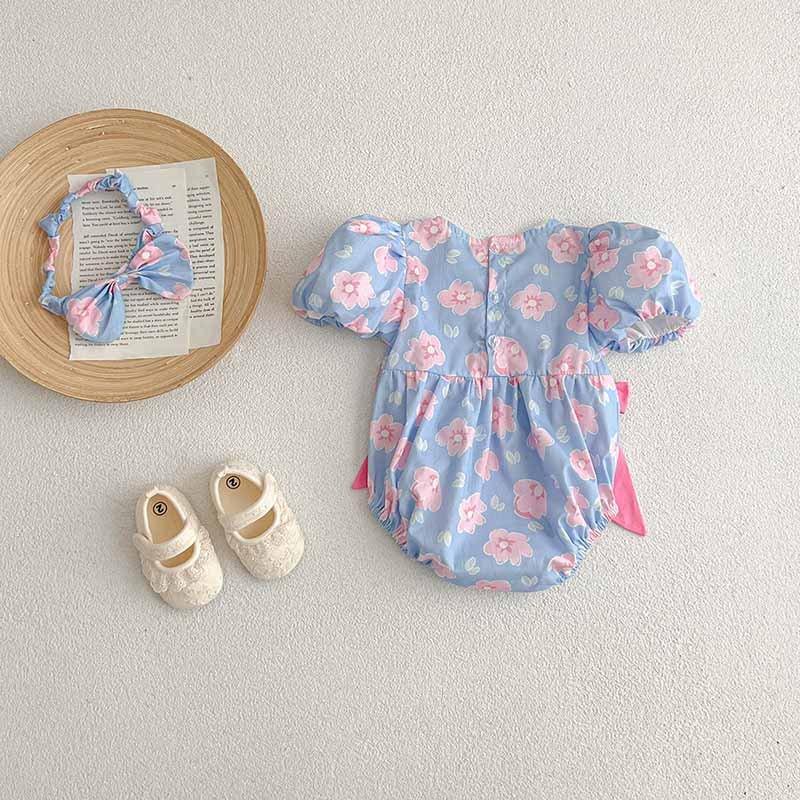 Kids Baby Girls Casual Cute Sweet Tiny Flower Bow Short Sleeve Romper