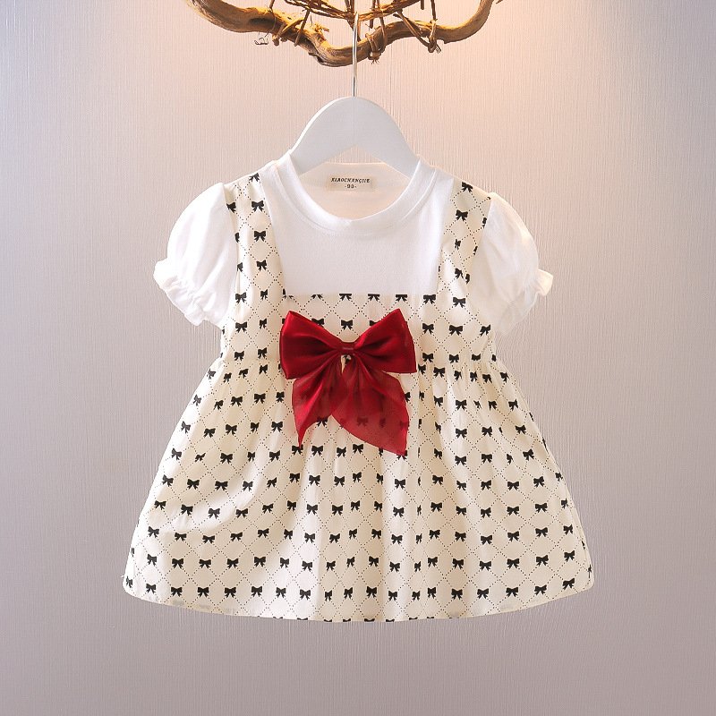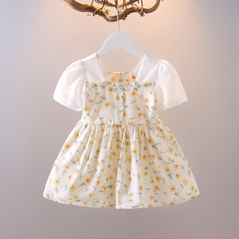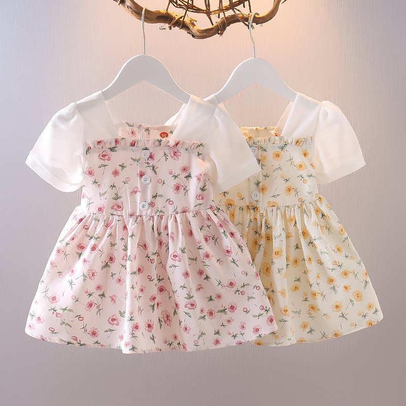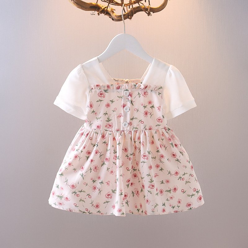 Kids Baby Girls Casual Cute Sweet Tiny Flower Print Short Sleeve Dress
