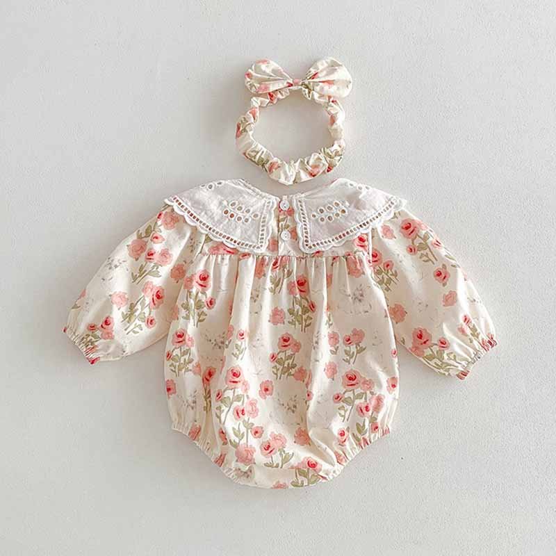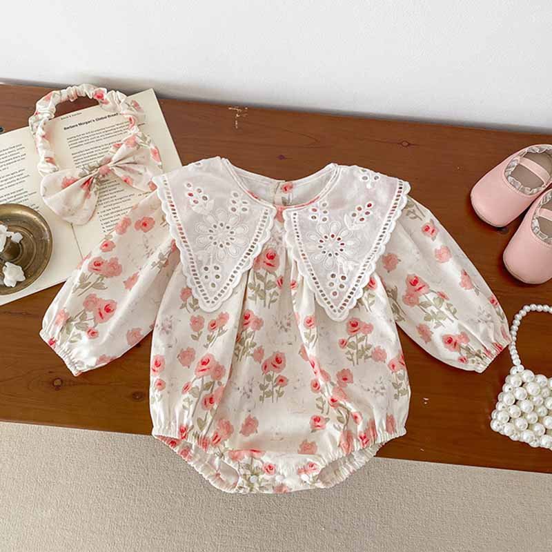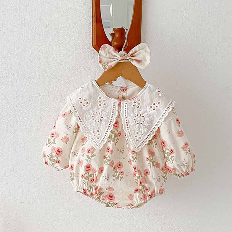 Kids Baby Girls Casual Cute Tiny Flower Print Bow Long Sleeve Romper