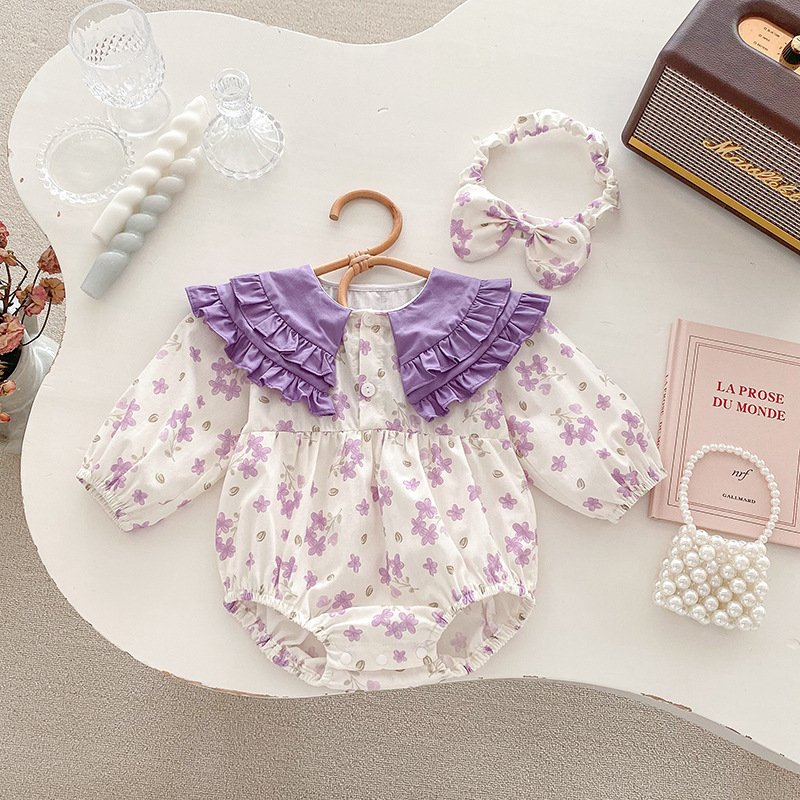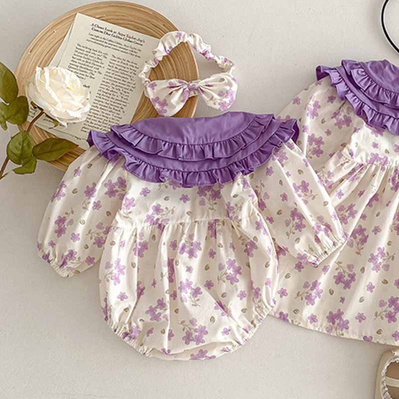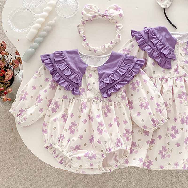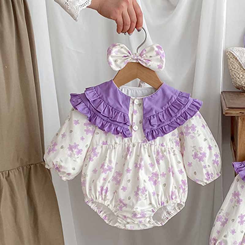 Kids Baby Girls Casual Cute Tiny Flower Print Long Sleeve Romper