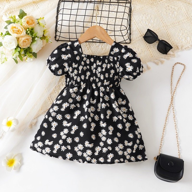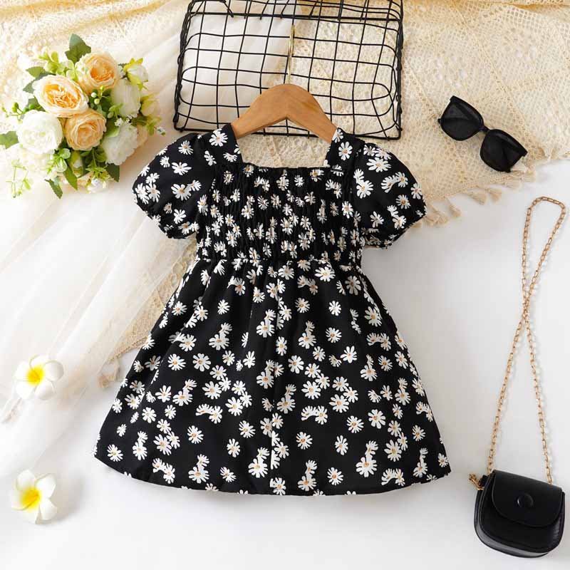 Kids Baby Girls Casual Cute Tiny Flower Print Puff Sleeve Dress