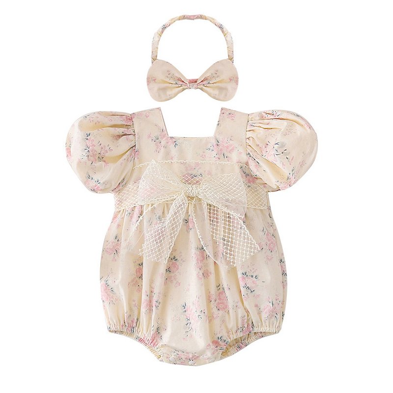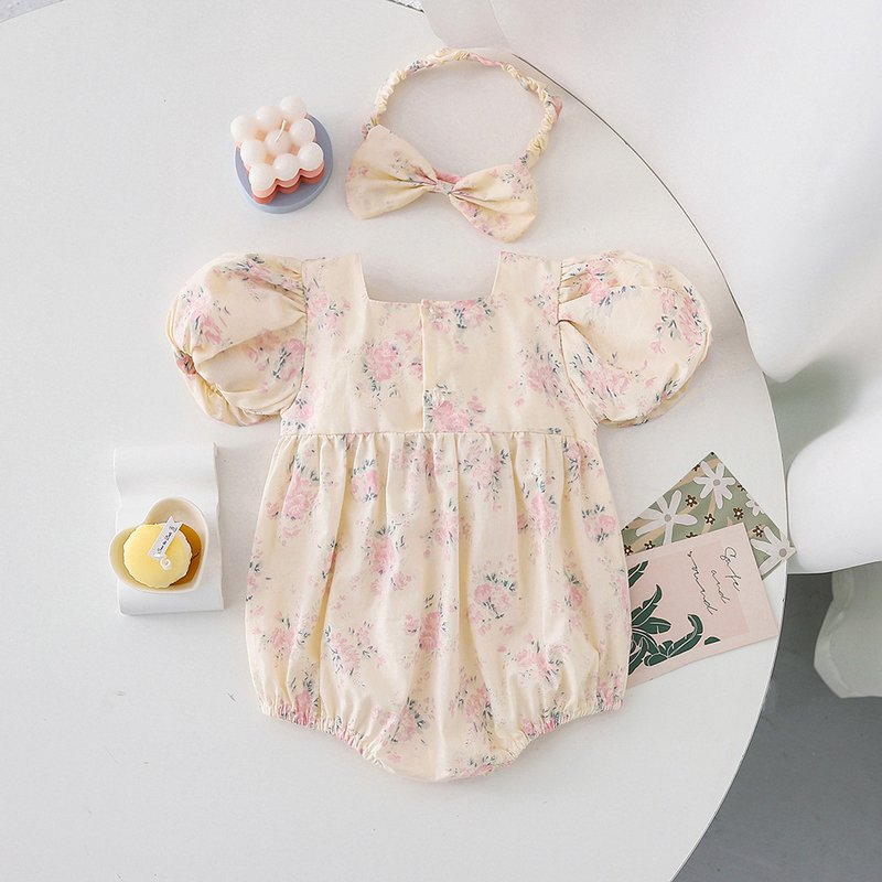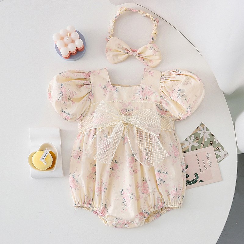 Kids Baby Girls Casual Cute Tiny Flower Print Short Sleeve Romper