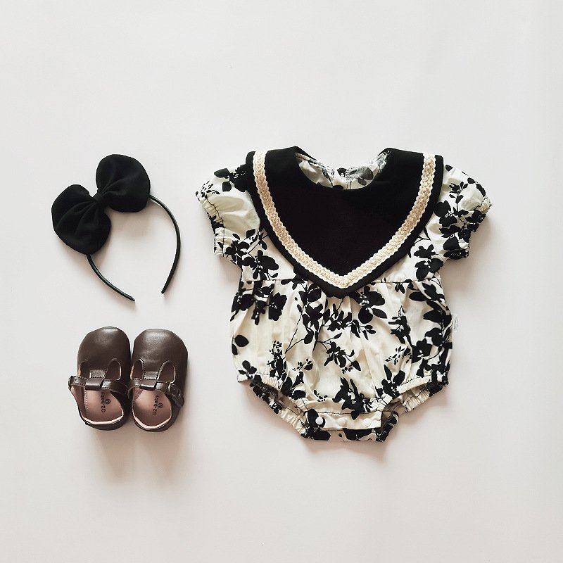 Kids Baby Girls Casual Cute Tiny Flower Print Short Sleeve Romper