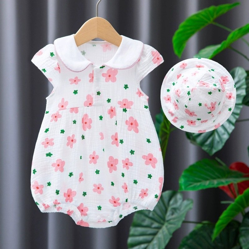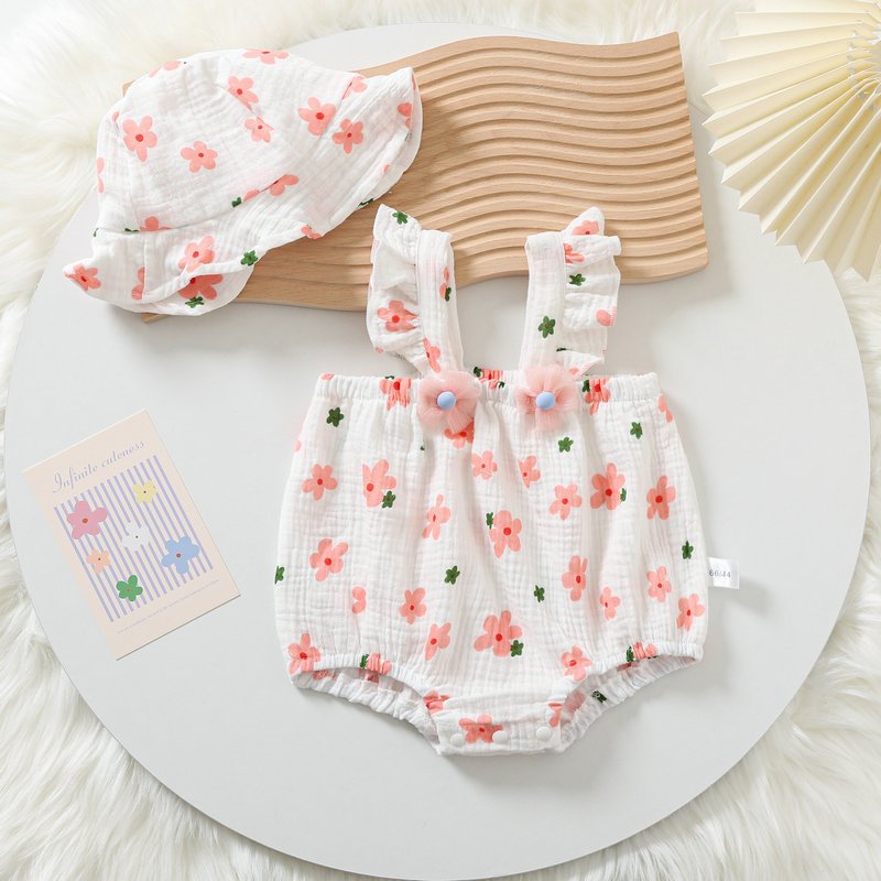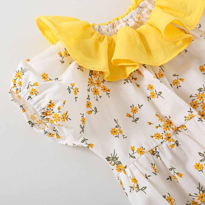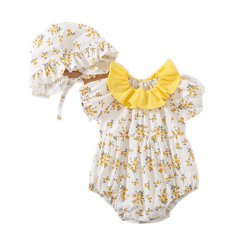 Kids Baby Girls Casual Cute Tiny Flower Print Short Sleeve Romper