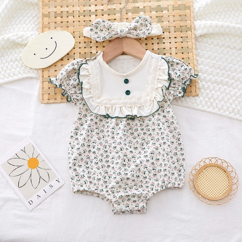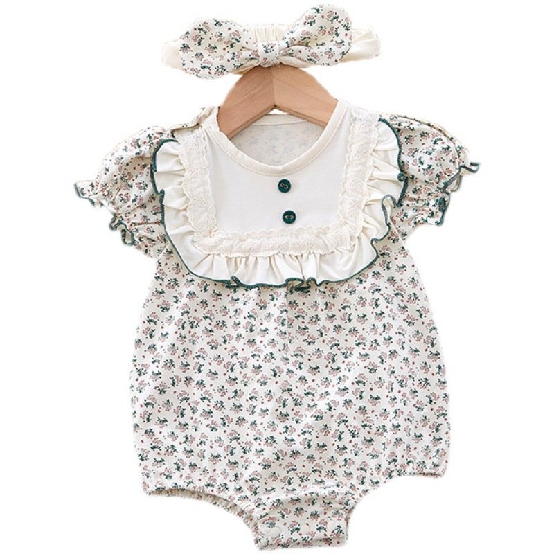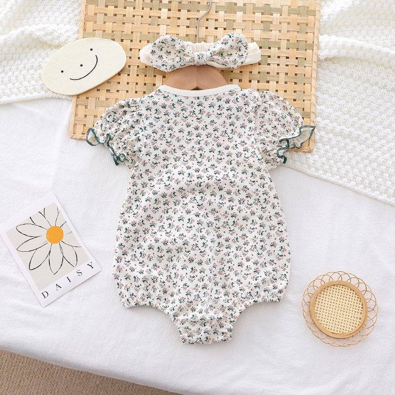 Kids Baby Girls Casual Cute Tiny Flower Print Short Sleeve Romper