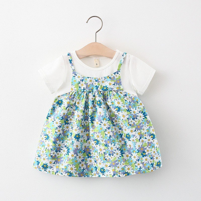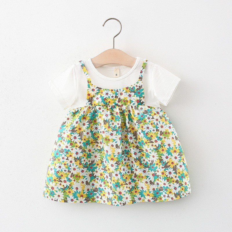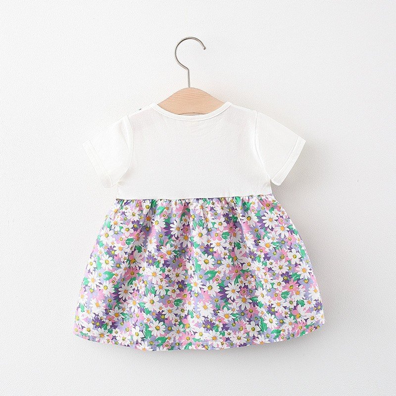 Kids Baby Girls Casual Cute Tiny Flower Print Short Sleeve Round Neck Dress