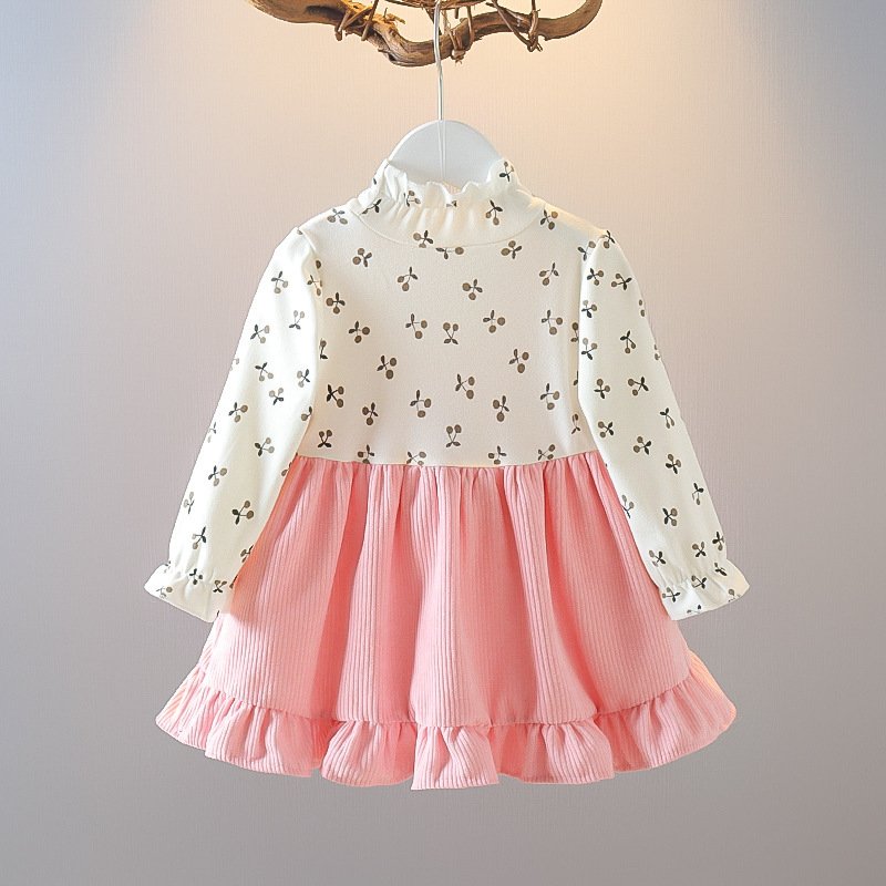 Kids Baby Girls Casual Cute Tiny Flower Stripe Long Sleeve Dress