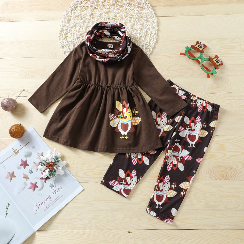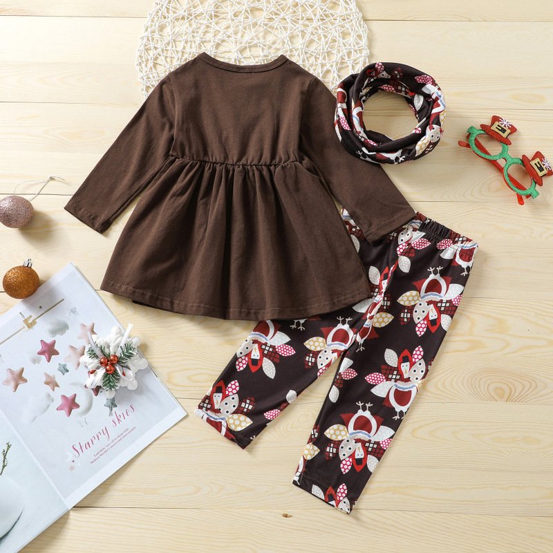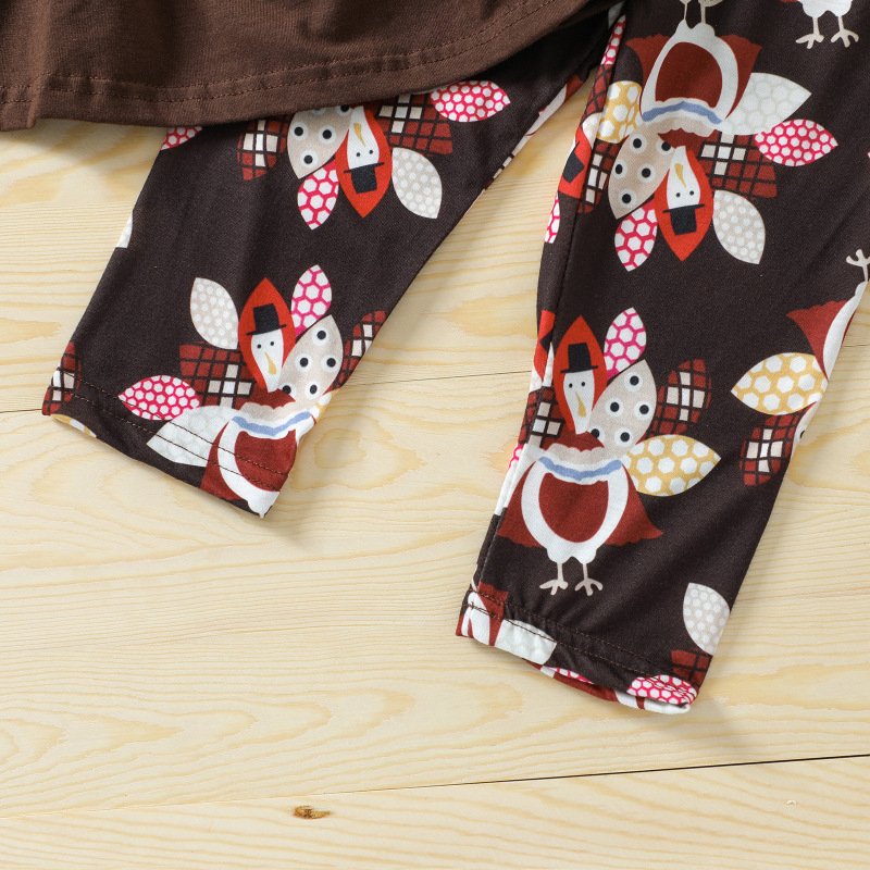 Kids Baby Girls Casual Sports Leopard Cartoon Print Long Sleeve Round Neck Dress Trousers Set