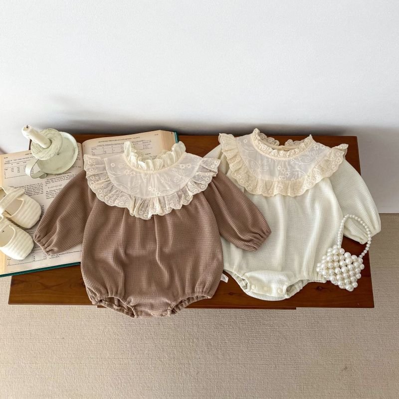 Kids Baby Girls Cute Lace Long Sleeve Round Neck Romper
