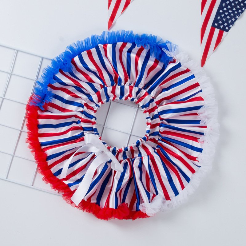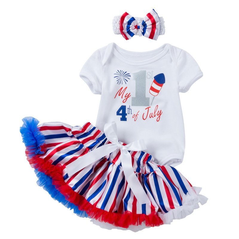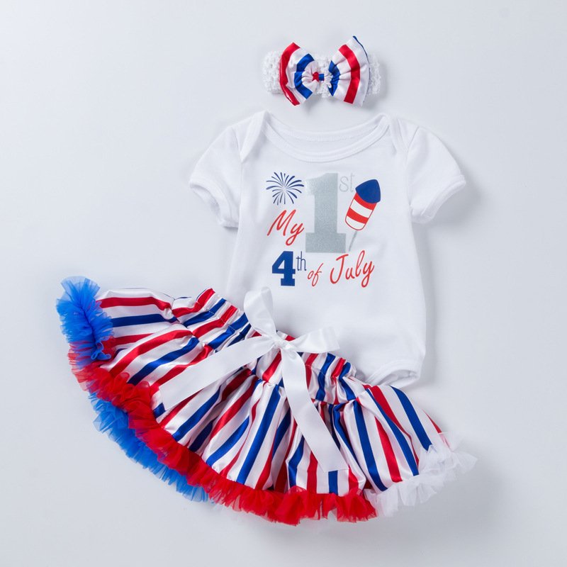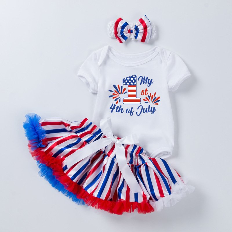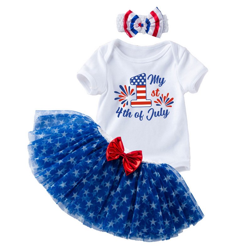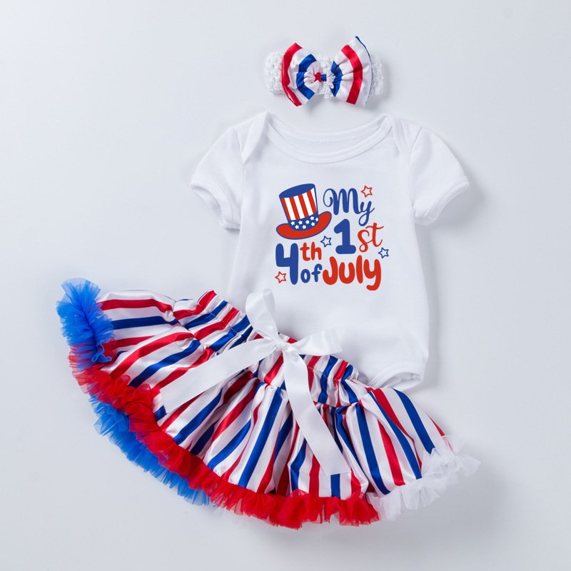 Kids Baby Girls Cute Party Independence Day Bow Print Romper Mesh Skirt Set