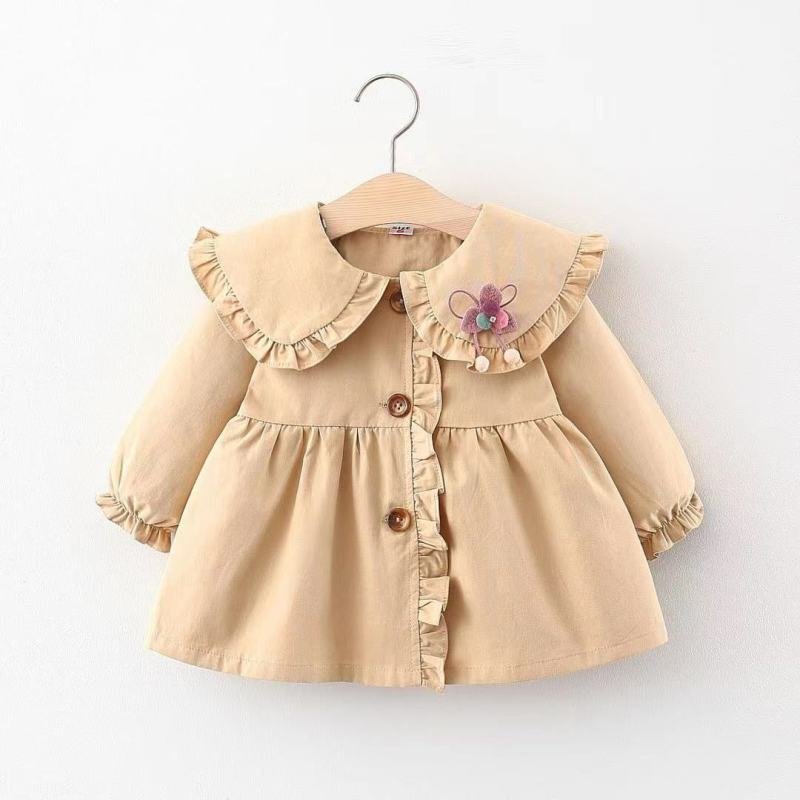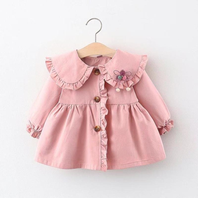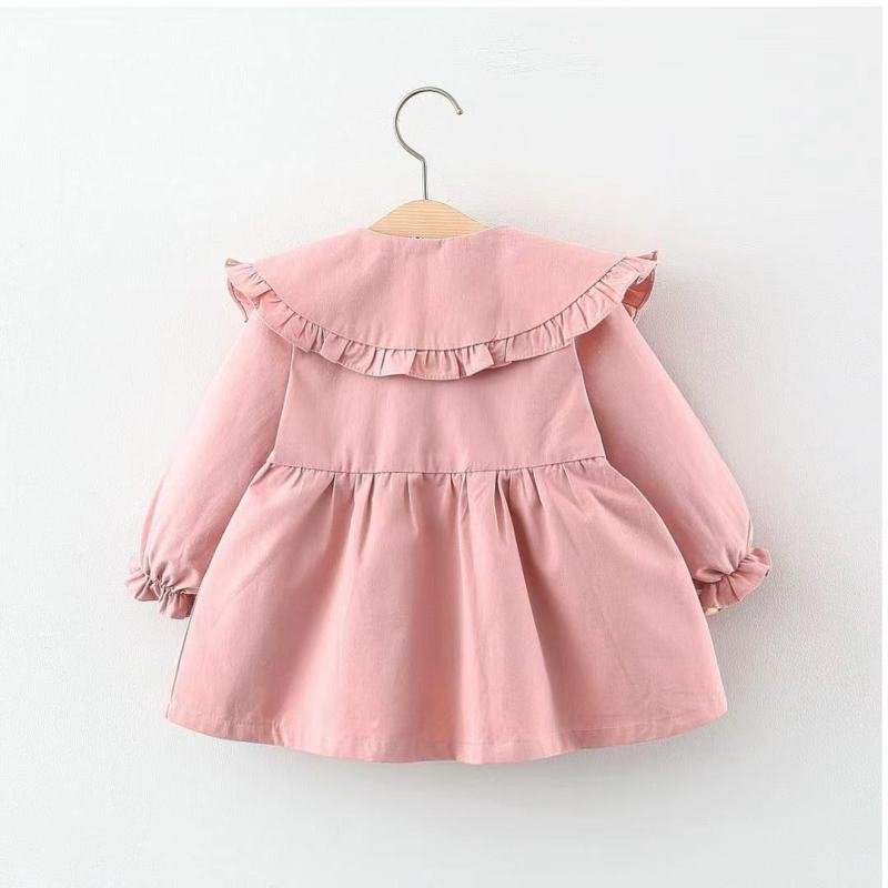 Kids Baby Girls Cute Sweet Solid Color Long Sleeve Lapel Dress