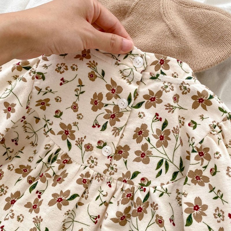 Kids Baby Girls Cute Tiny Flower Print Long Sleeve Romper