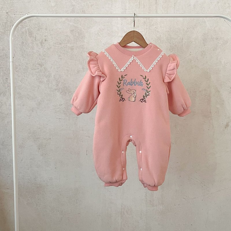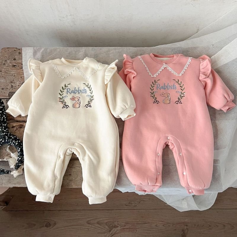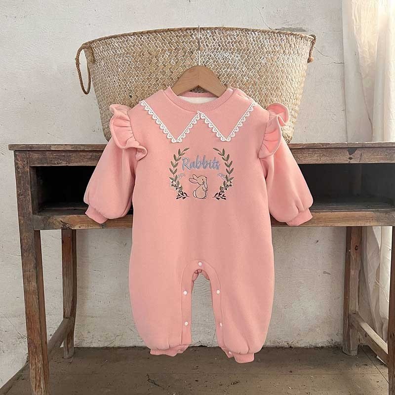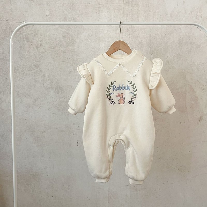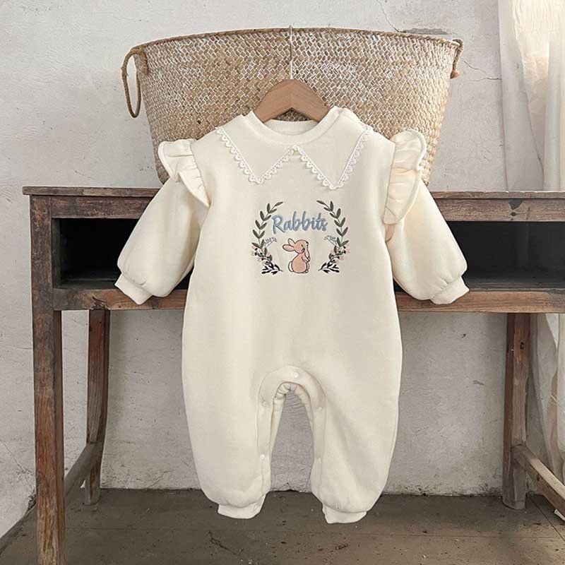 Kids Baby Girls Easter Casual Cute Cartoon Rabbit Embroidery Long Sleeve Round Neck Bodysuit