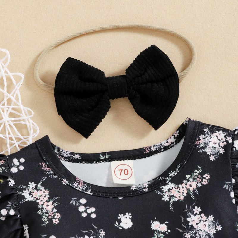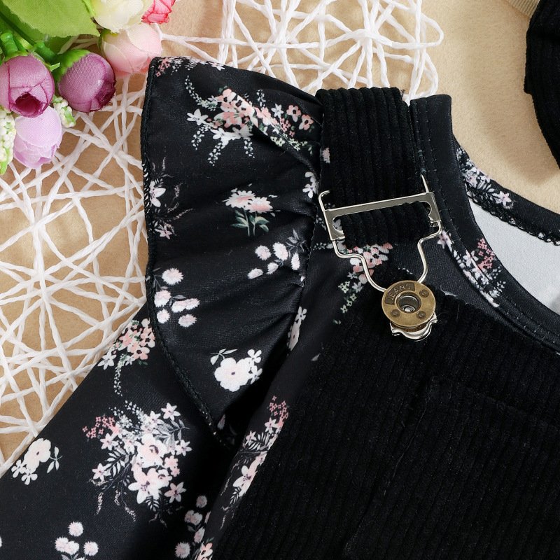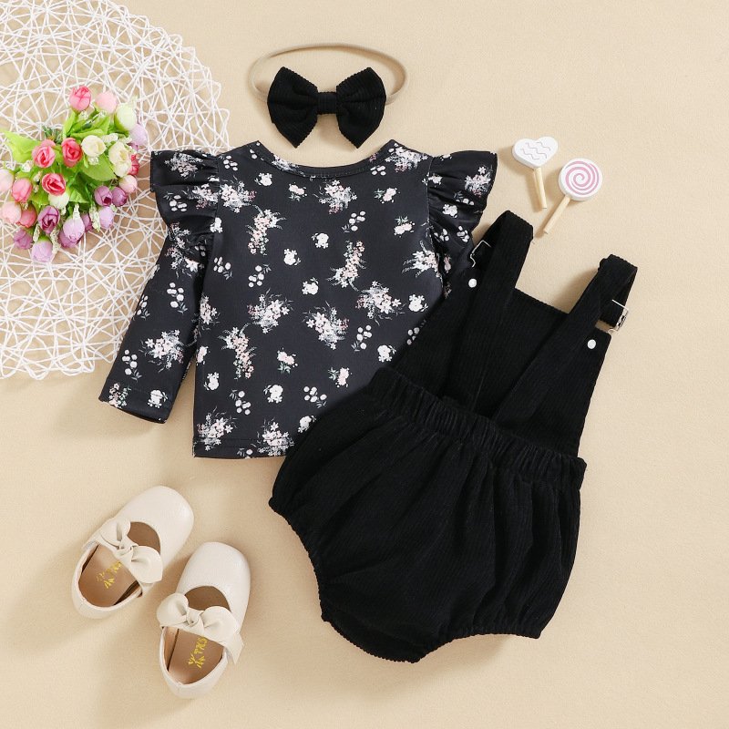 Kids Baby Girls Fashion Casual Floral Long Sleeve Round Neck T-Shirt Strap Romper Sets