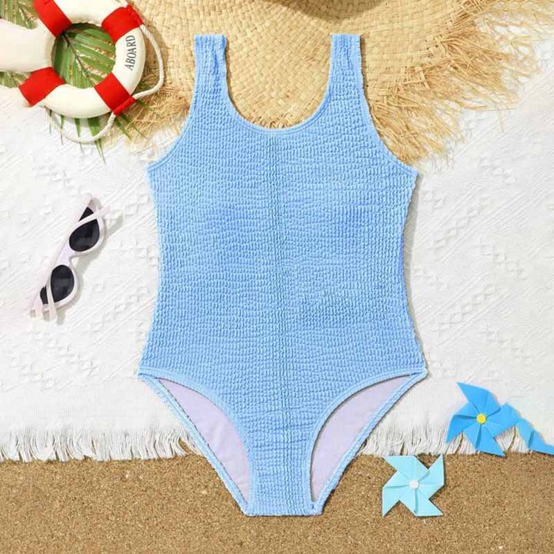 Kids Baby Girls Fashion Casual Solid Color Rib-Knit One Piece Swimwear