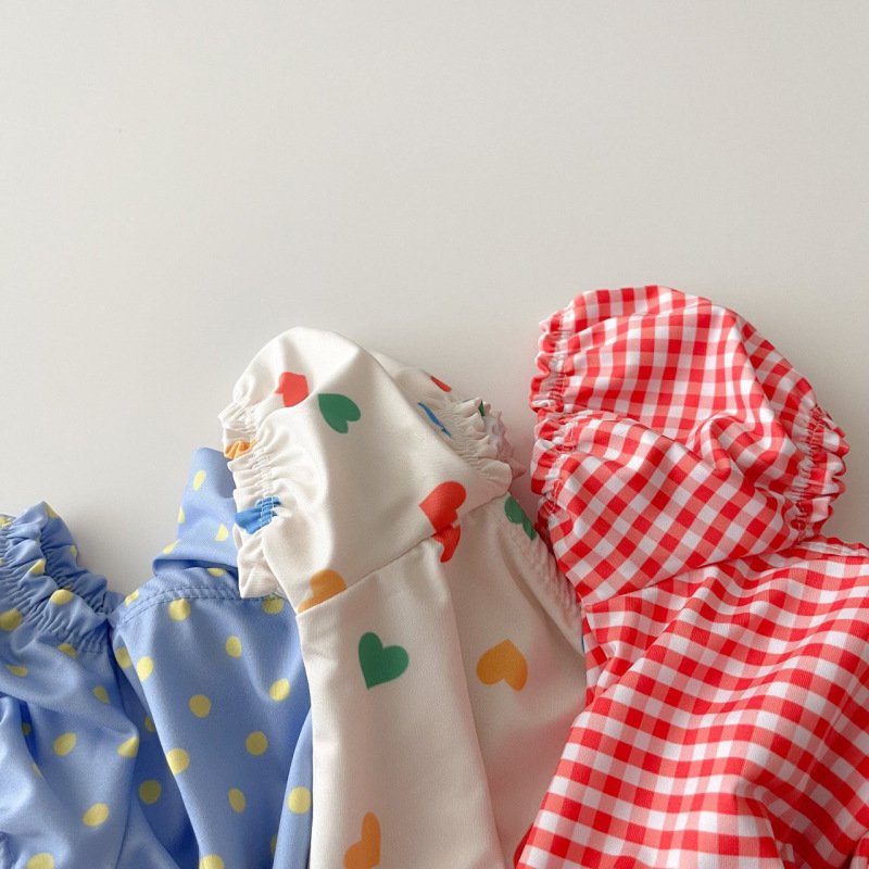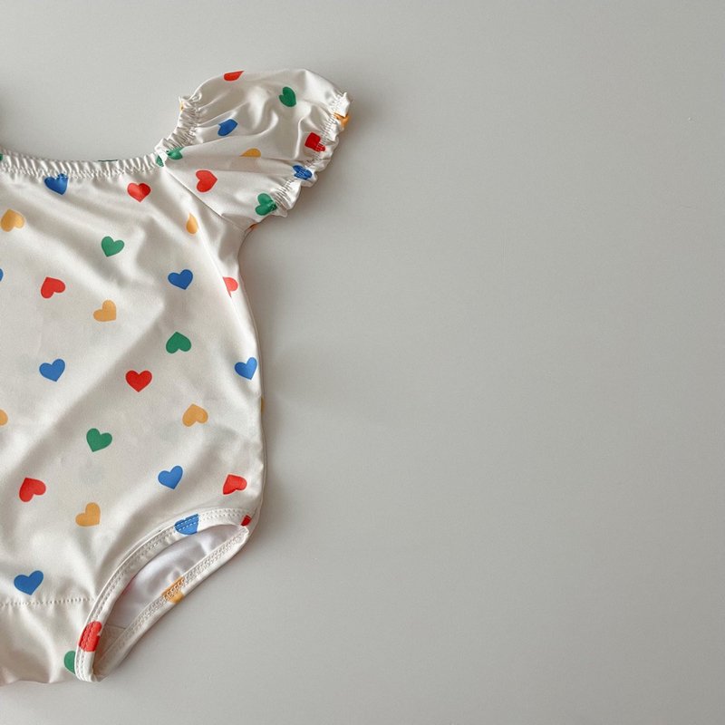Kids Baby Girls Holiday Beach Played Heart Print Puff Sleeve One Piece Swimsuit