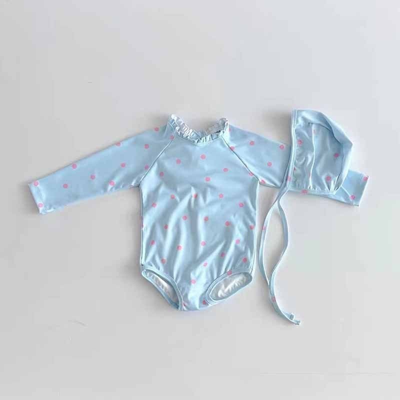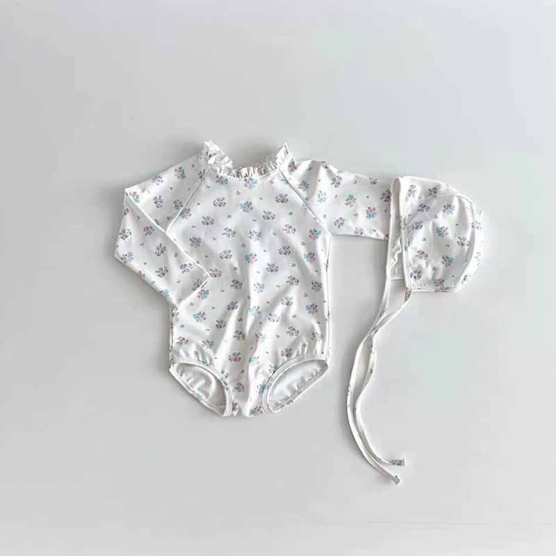 Kids Baby Girls Holiday Beach Tiny Flower Print Long Sleeve One Piece Swimsuit