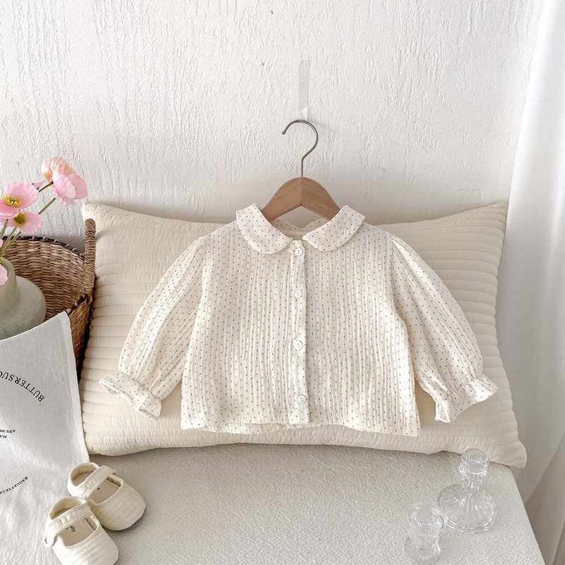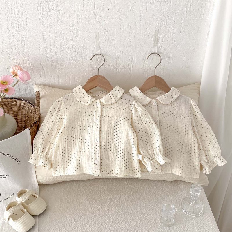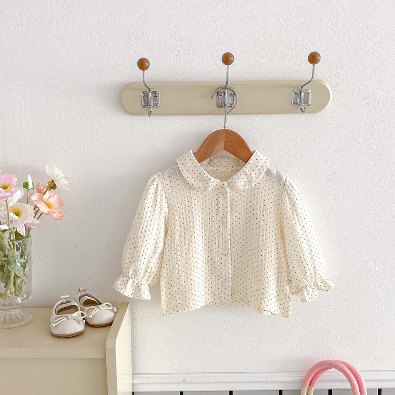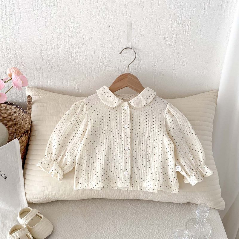 Kids Baby Girls Polka Dot Long Sleeve Lapel Blouses