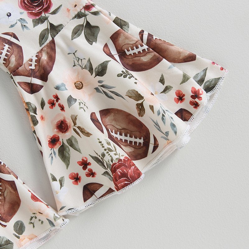 Kids Baby Girls Spring And Autumn Casual Cute Letters Print Long Sleeve Round Neck Romper Flare Trousers Set