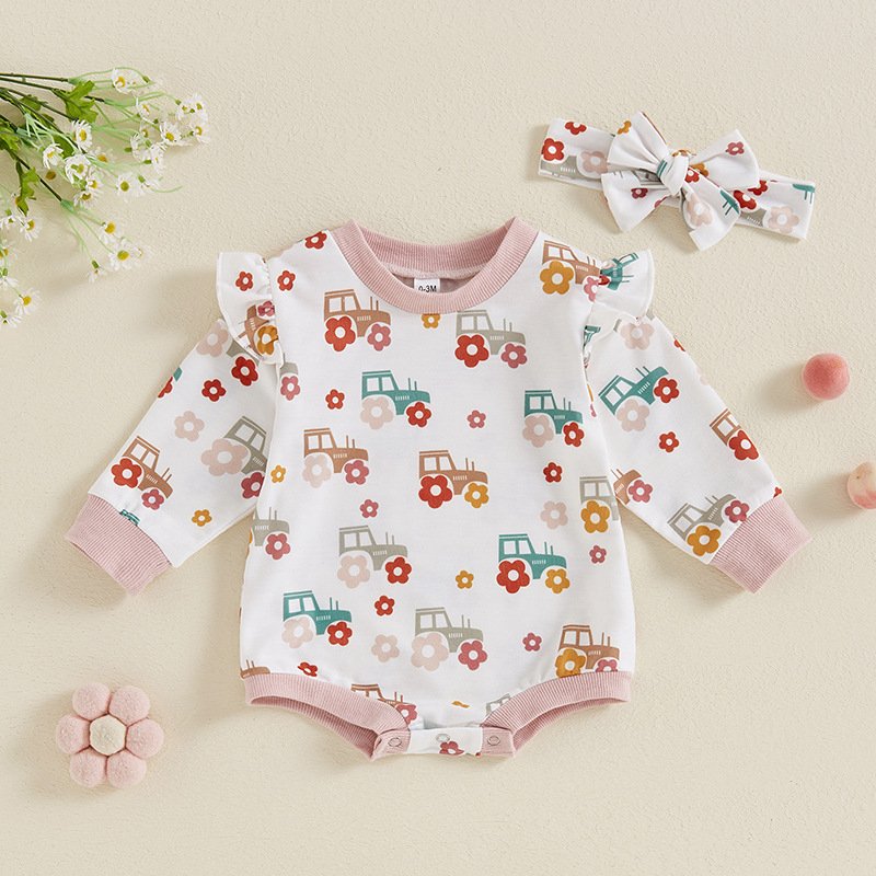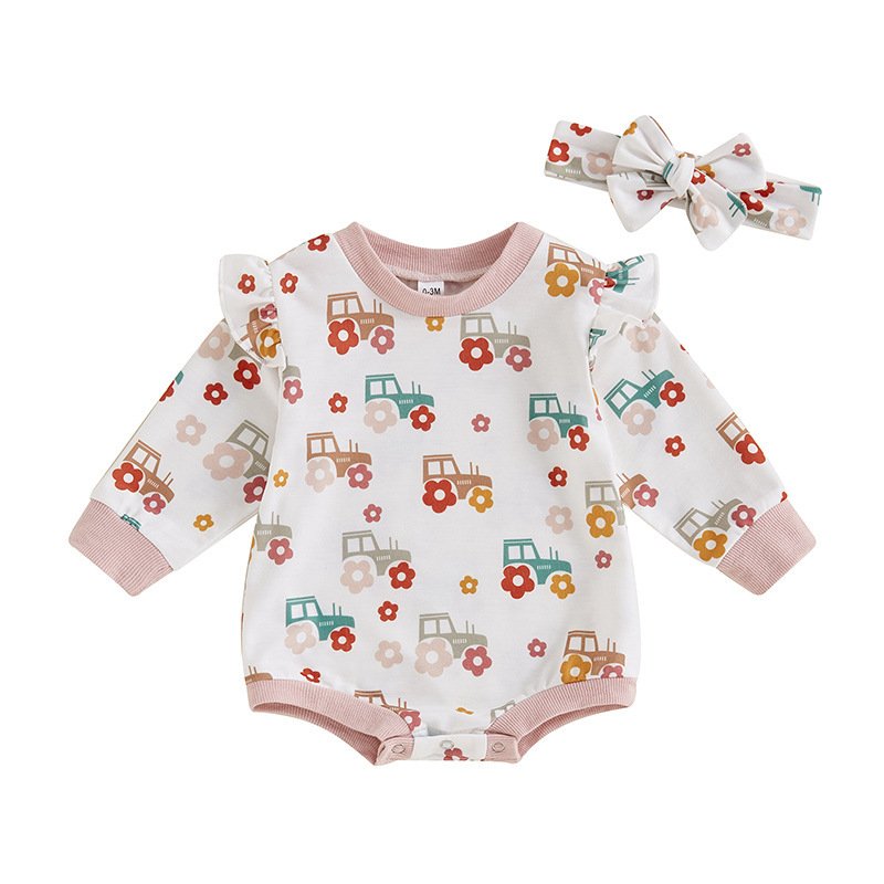 Kids Baby Girls Spring Autumn Casual Cute Car Print Long Sleeve Romper