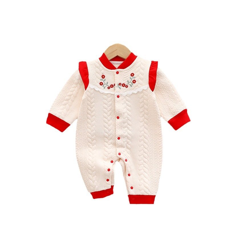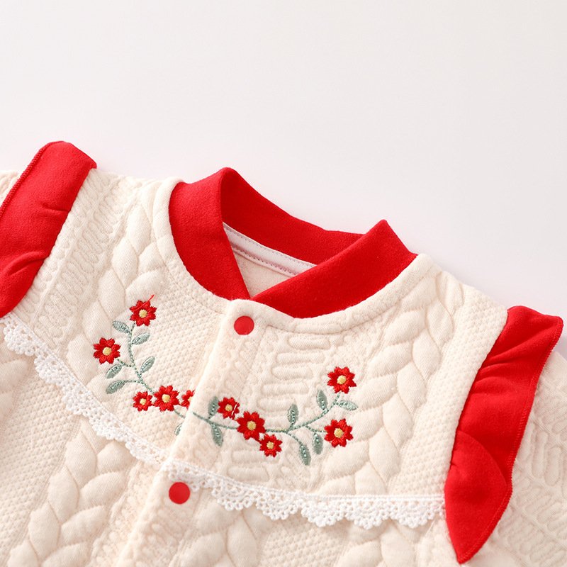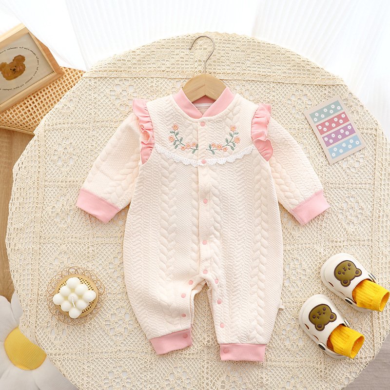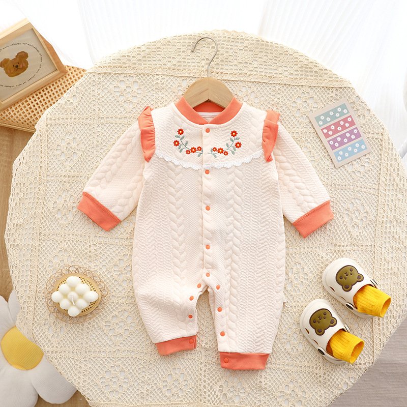 Kids Baby Girls Spring Autumn Casual Cute Embroidery Floral Long Sleeve Round Neck Bodysuit