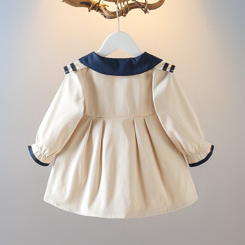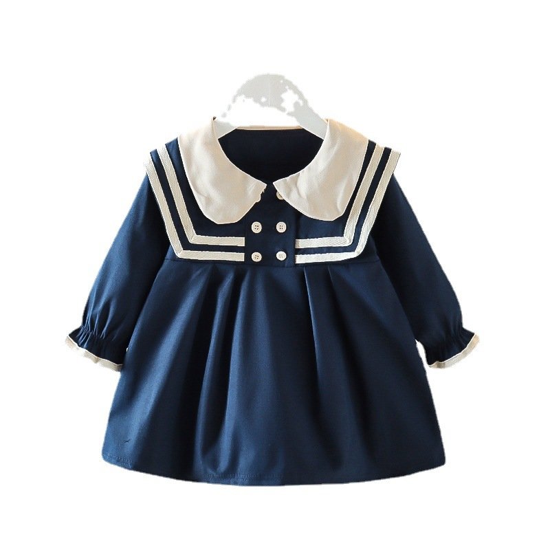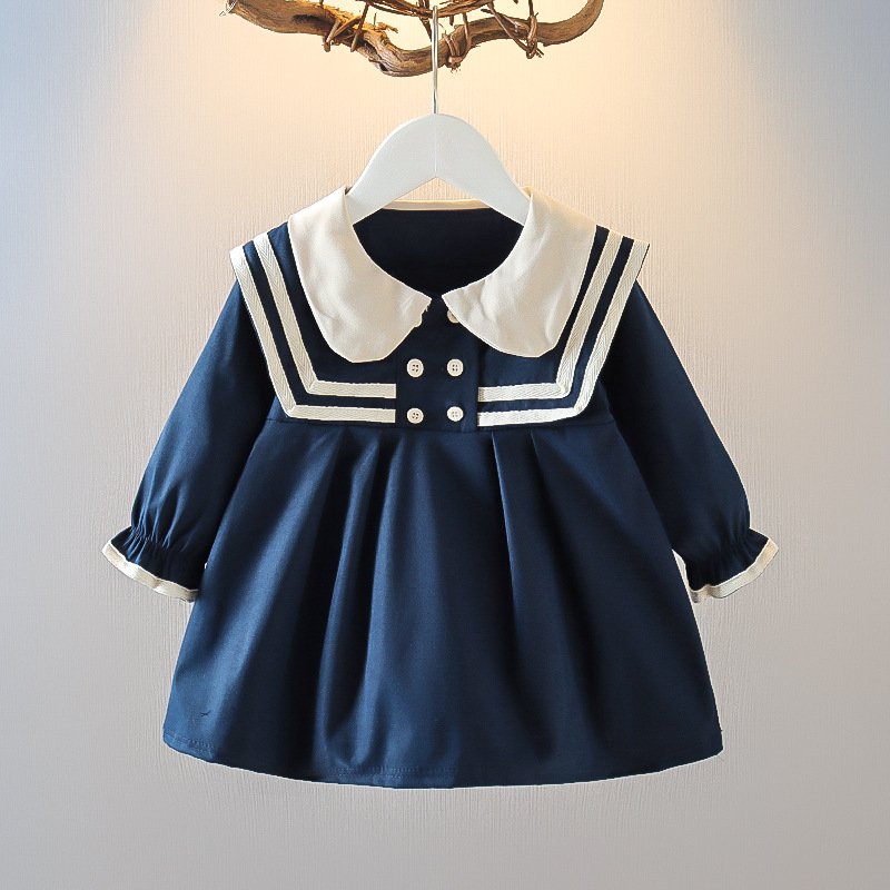 Kids Baby Girls Spring Autumn Casual Cute Preppy Stripe Long Sleeve Peter Pan Collar Dress