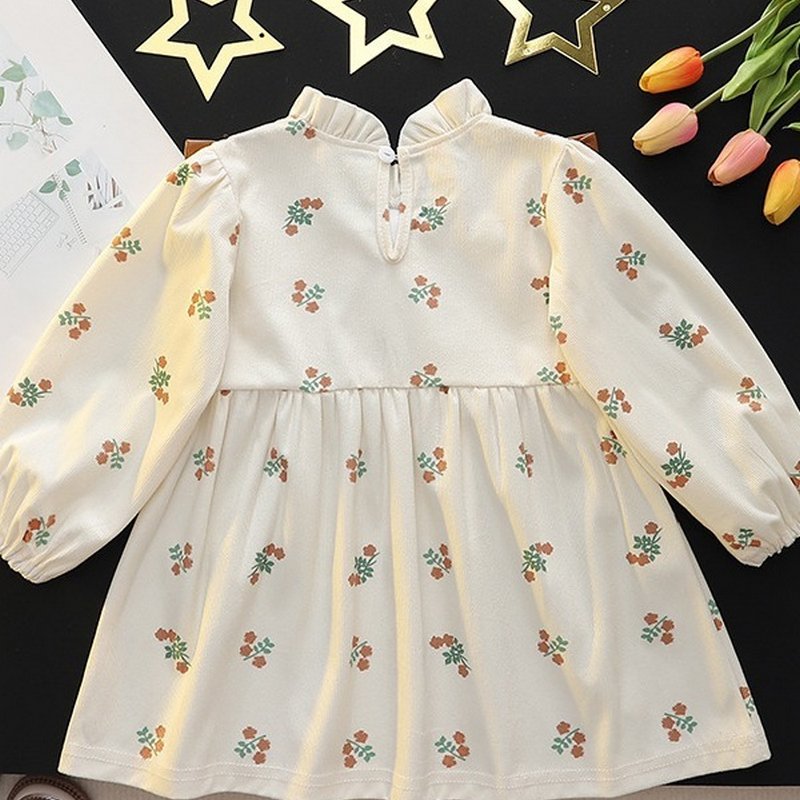 Kids Baby Girls Spring Autumn Casual Cute Tiny Flower Long Sleeve Dress