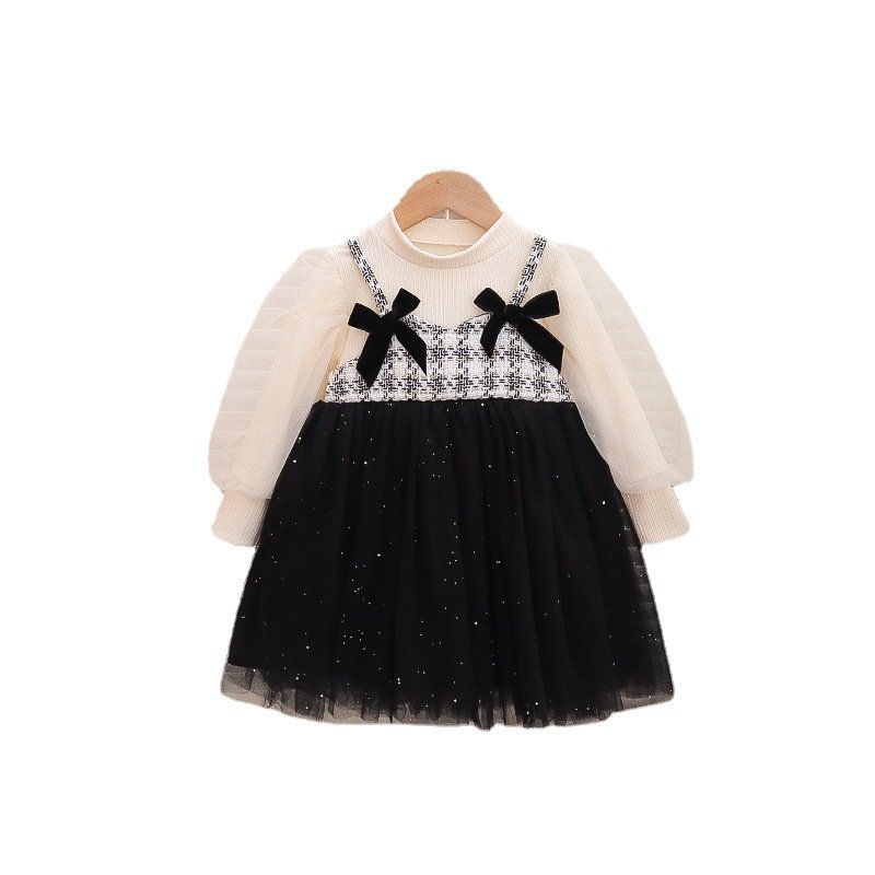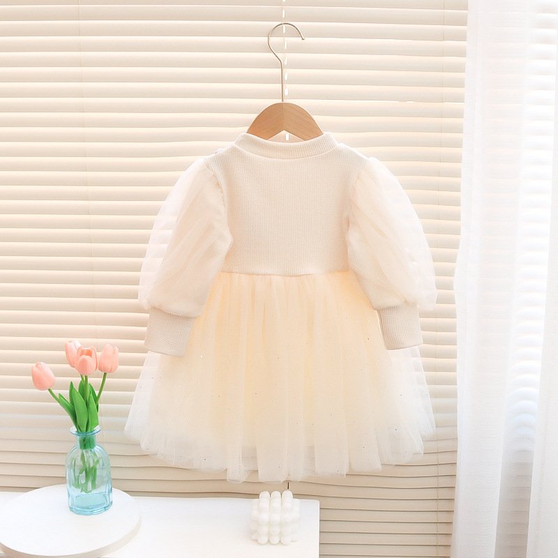 Kids Baby Girls Spring Autumn Fashion Casual Mesh Lace Bow Long Sleeve Dress