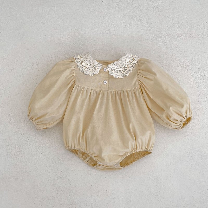 Kids Baby Girls Spring Autumn Fashion Casual Solid Color Puff Sleeve Round Neck Button Long Sleeve Romper