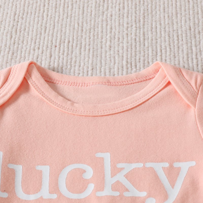 Kids Baby Girls St.Patrick’s Day Casual Cute Cartoon Letters Print Short Sleeve Round Neck Romper Shorts Set